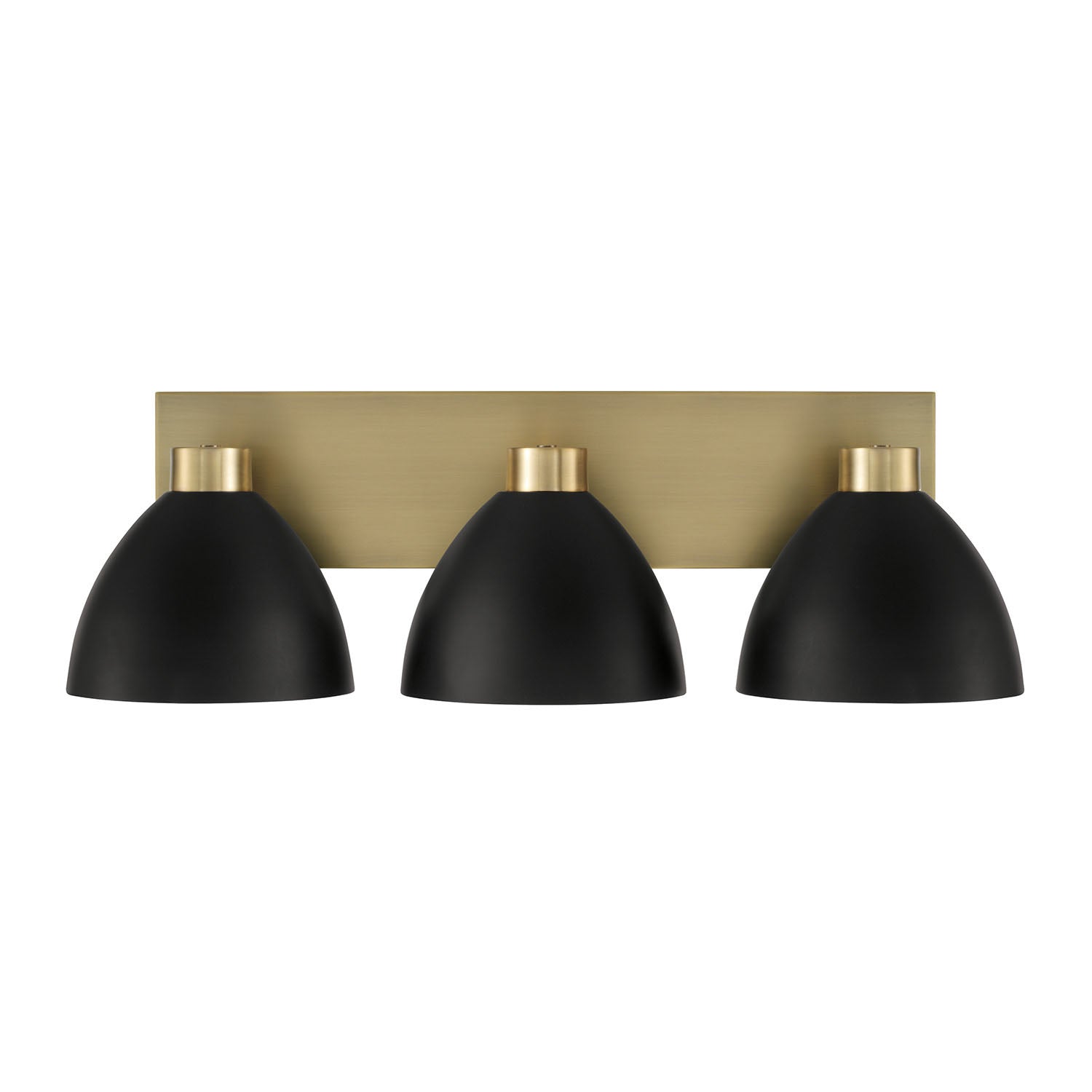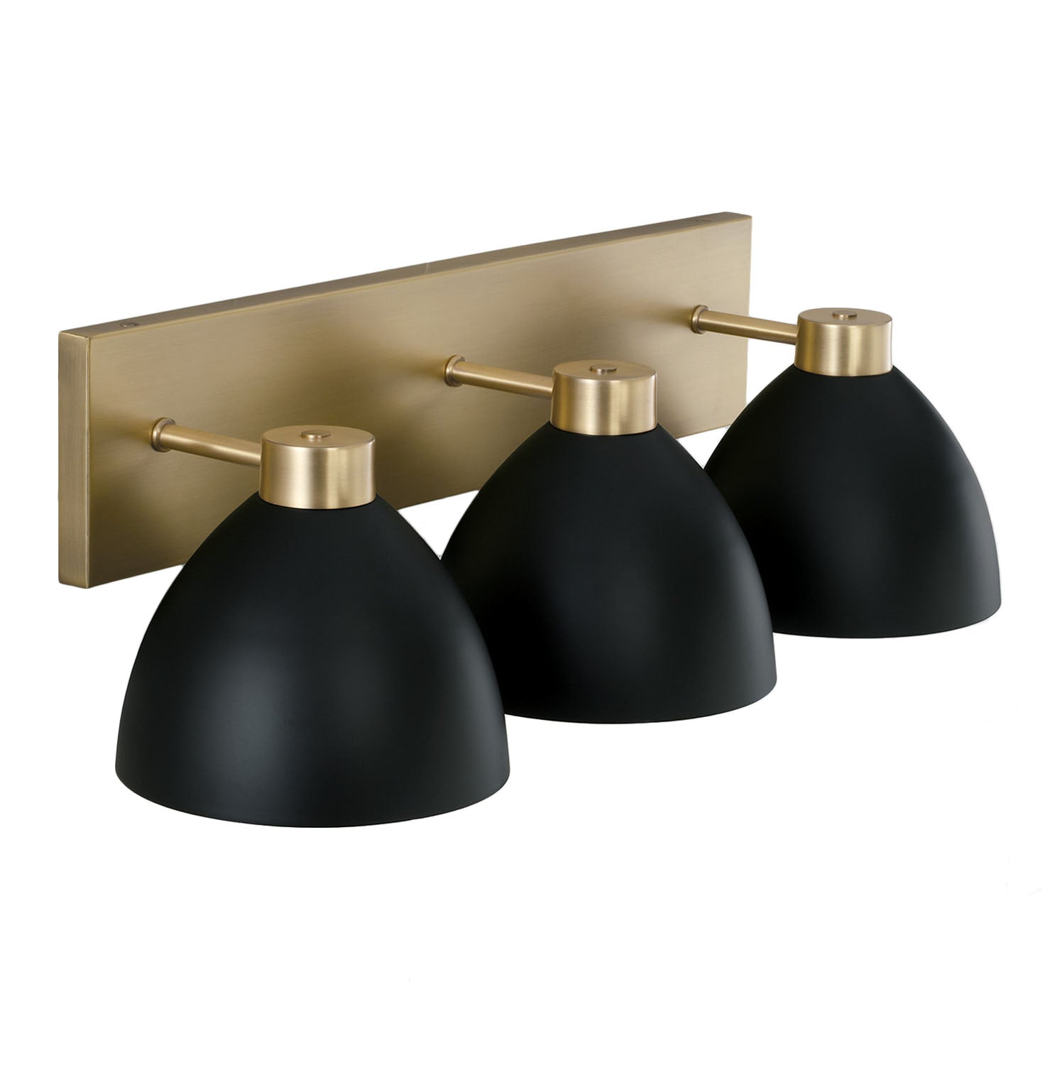 Cleo 3 Light Vanity, Matte Black and Aged Brass