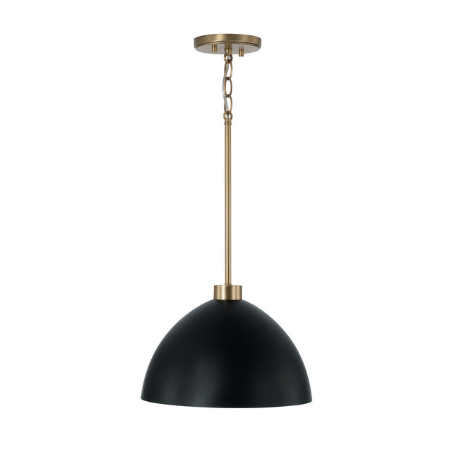 Cleo Pendant 13", Matte Black and Aged Brass