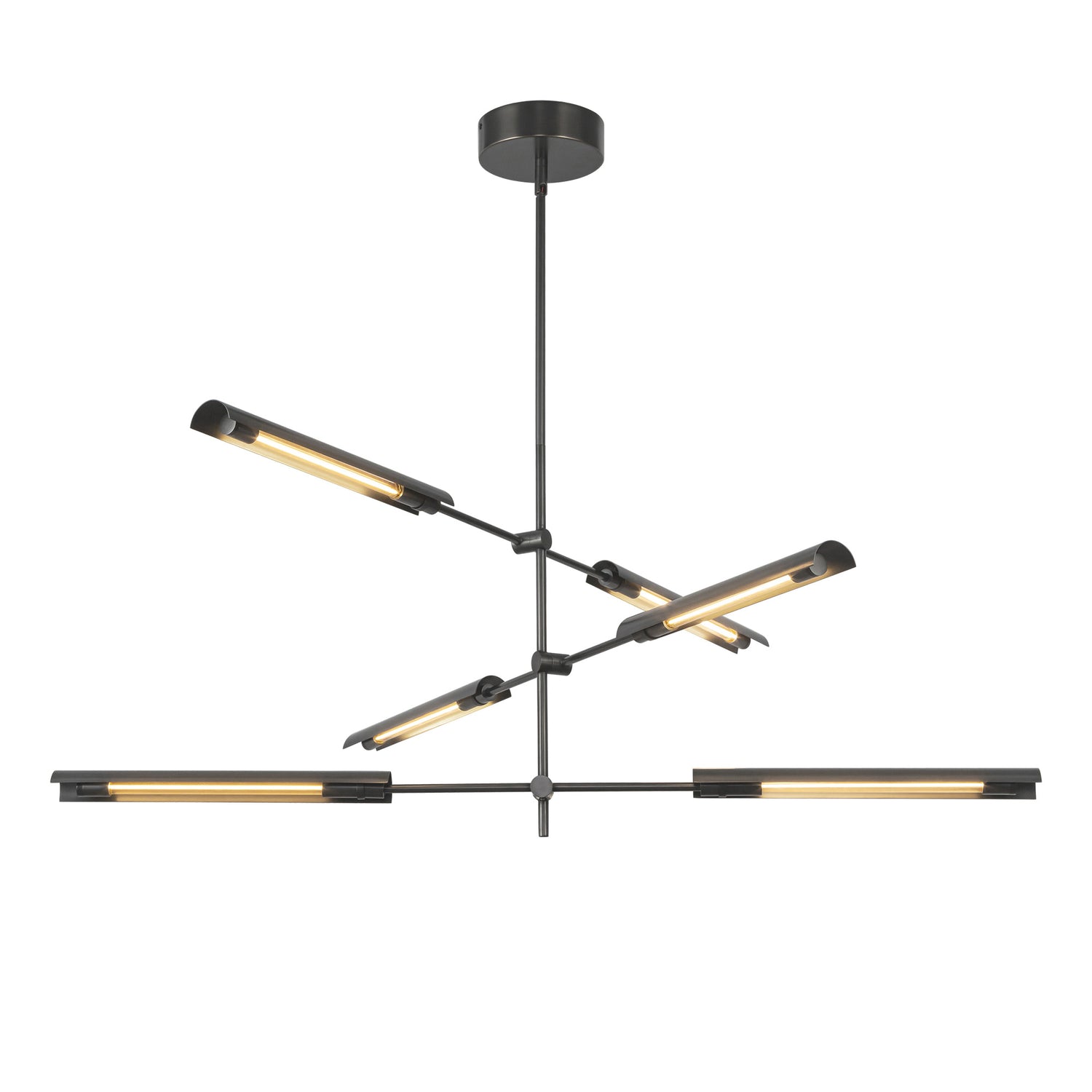 The Linden 6 Light LED Chandelier takes all the things that make you nostalgic for mid-century modern vibes and makes them new again. This striking 42" chandelier will elevate your next design with its mix of old and new sensibilities, perfect for dining rooms, living spaces, foyers, and areas seeking dramatic statement lighting with timeless appeal. The sleek metal shades create clean lines and abundant illumination, while the urban bronze finish adds rich depth and sophisticated contrast to any interior. The integrated LED technology provides warm 2700K light at 90 CRI for exceptional color rendering, while the six-light configuration delivers substantial lighting for larger spaces. With adjustable arms and expert engineering, this chandelier transforms any space into a celebration of mid-century modern design reimagined for today's interiors.