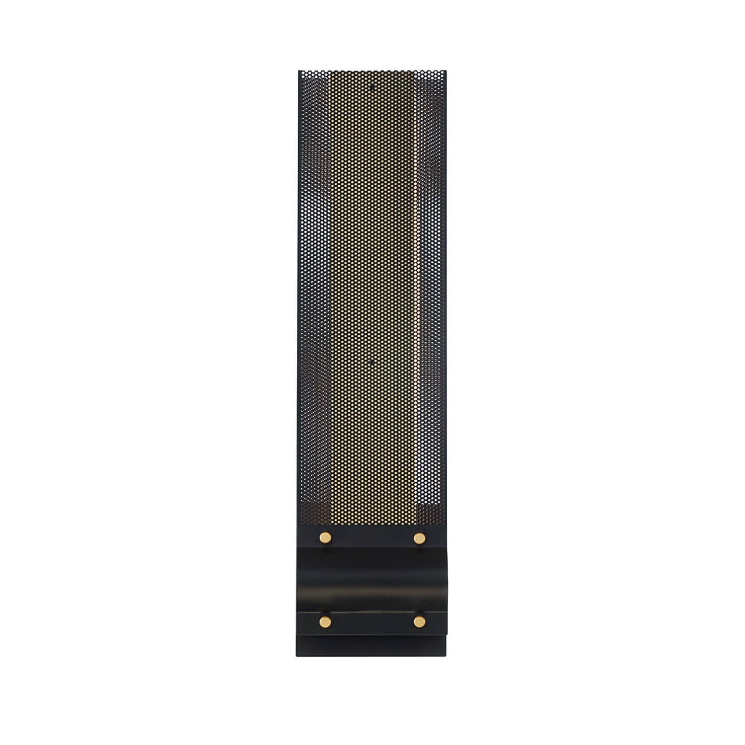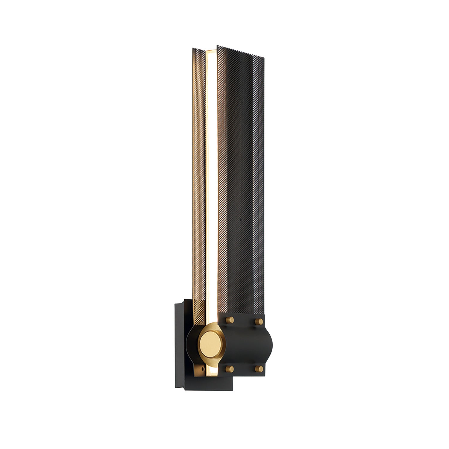 • Bold vertical design with filigreed cut metal, finished in black with brass accents, featuring integrated LED technology that follows the elongated form for brilliant ambient illumination
