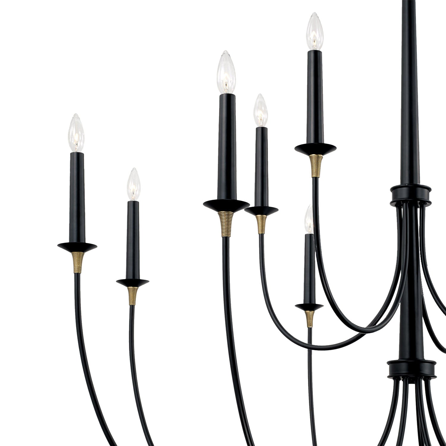 Malin 12 Light Two-Tier Chandelier 54", Matte Black with Brass Accents