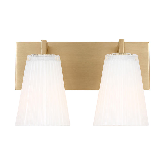 The Margot 2 Light Vanity features clear ribbed glass shades finished with a white interior that creates sophisticated illumination with soft layered glow and refined contemporary appeal. This elegant vanity fixture combines distinctive textural glass with enhanced luminous quality, showcasing two coordinated shades that provide balanced lighting distribution and excellent coverage for compact vanity areas. The structured framework delivers clean architectural lines while the ribbed glass creates subtle visual interest and optimal light diffusion, perfect for bathrooms, powder rooms, vanity areas, and spaces seeking refined vanity lighting with efficient proportions. The satin brass finish brings warm metallic sophistication to the structured framework while ensuring reliable daily performance. With its damp-rated construction and thoughtfully compact proportions, this expertly crafted vanity fixture elevates any space with contemporary elegance and dependable functionality.