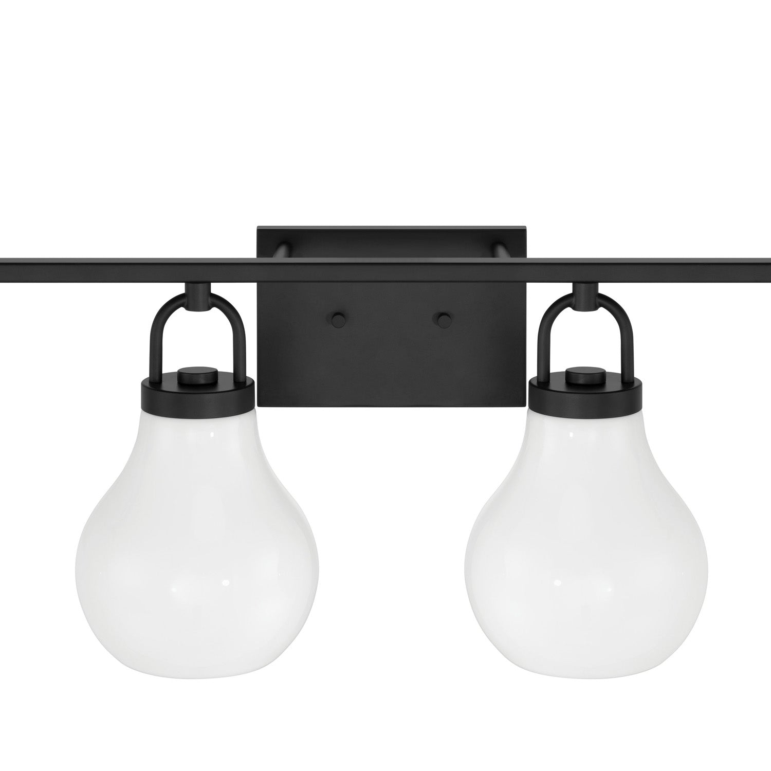 The Naya 4 Light Vanity 34", Matte Black and Opal Glass brings modern simplicity with an effortless sense of refinement to contemporary bathroom and powder room settings. This fixture is characterized by its distinctive architectural details, featuring oversized decorative loops that serve as sophisticated visual anchors for the design. Paired with softly tapered teardrop opal glass shades, the Naya collection creates a graceful and polished presence that complements a wide array of interior styles. The opaque glass diffuses light for a soft, uniform glow, ensuring your vanity area is beautifully illuminated while adding a touch of understated luxury to your daily routine.