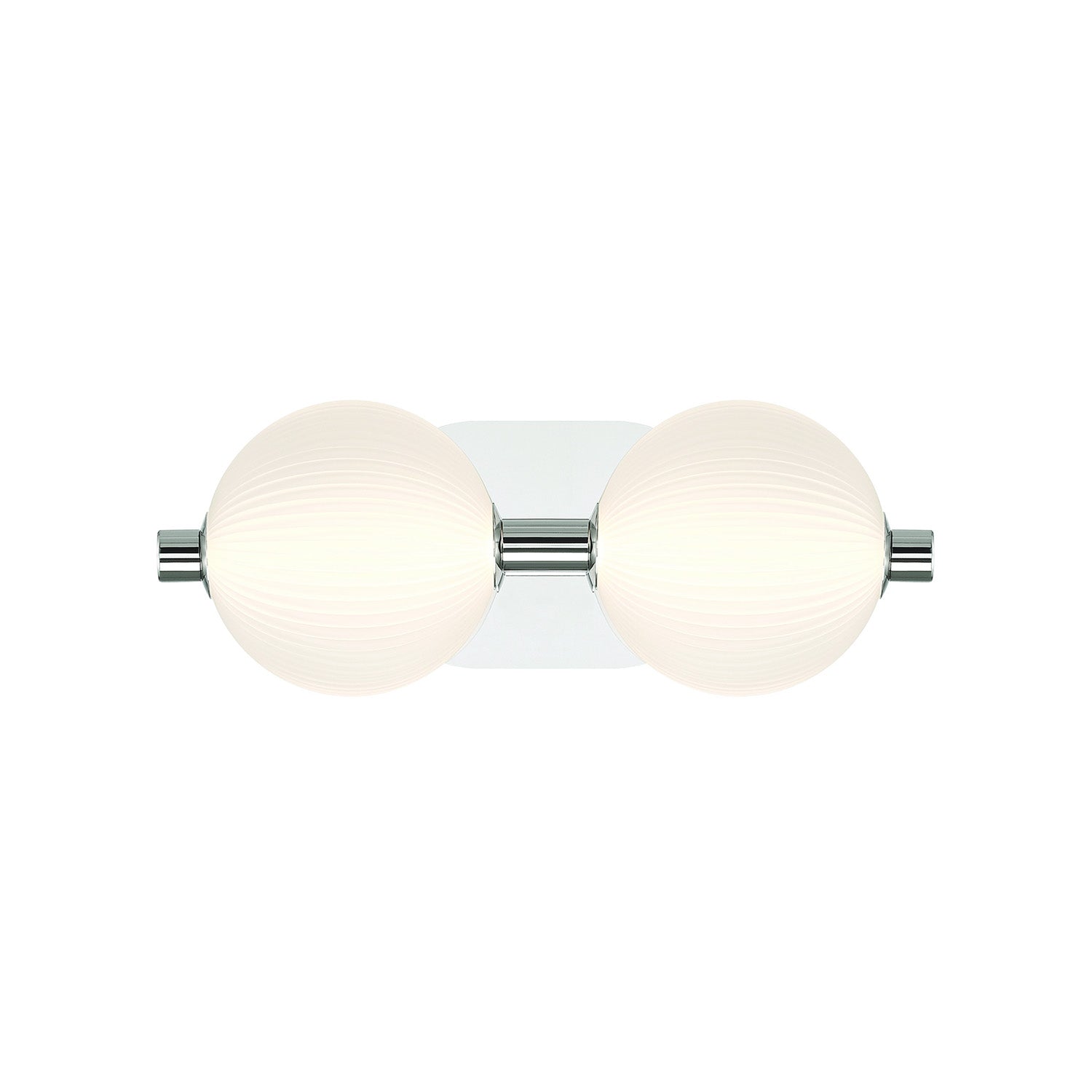 The Nola LED Vanity brings refined sophistication to any bathroom with its distinctive sphere design and polished nickel finish. This captivating fixture features two beautifully crafted ribbed opal glass globes that create soft, textured illumination perfect for vanity task lighting and daily routines. The polished nickel and ribbed opal glass deliver understated luxury with artisanal character. At 15" wide with integrated LED technology, this vanity light makes an elegant statement while providing decades of energy-efficient operation.