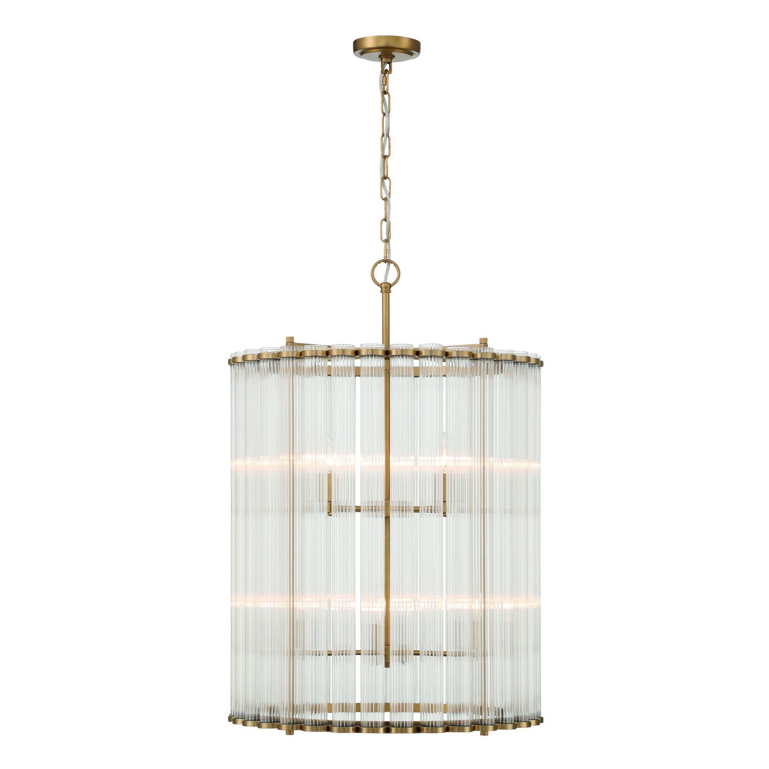 Nori 8 Light Chandelier 22", Brass and Ribbed Glass