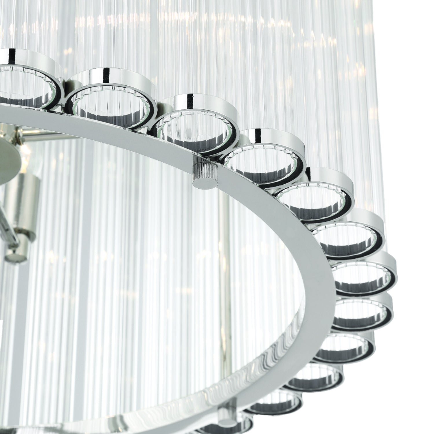 • Transitional design with polished nickel finish featuring elongated ribbed glass tubes arranged in drum formation for brilliant, evenly distributed illumination