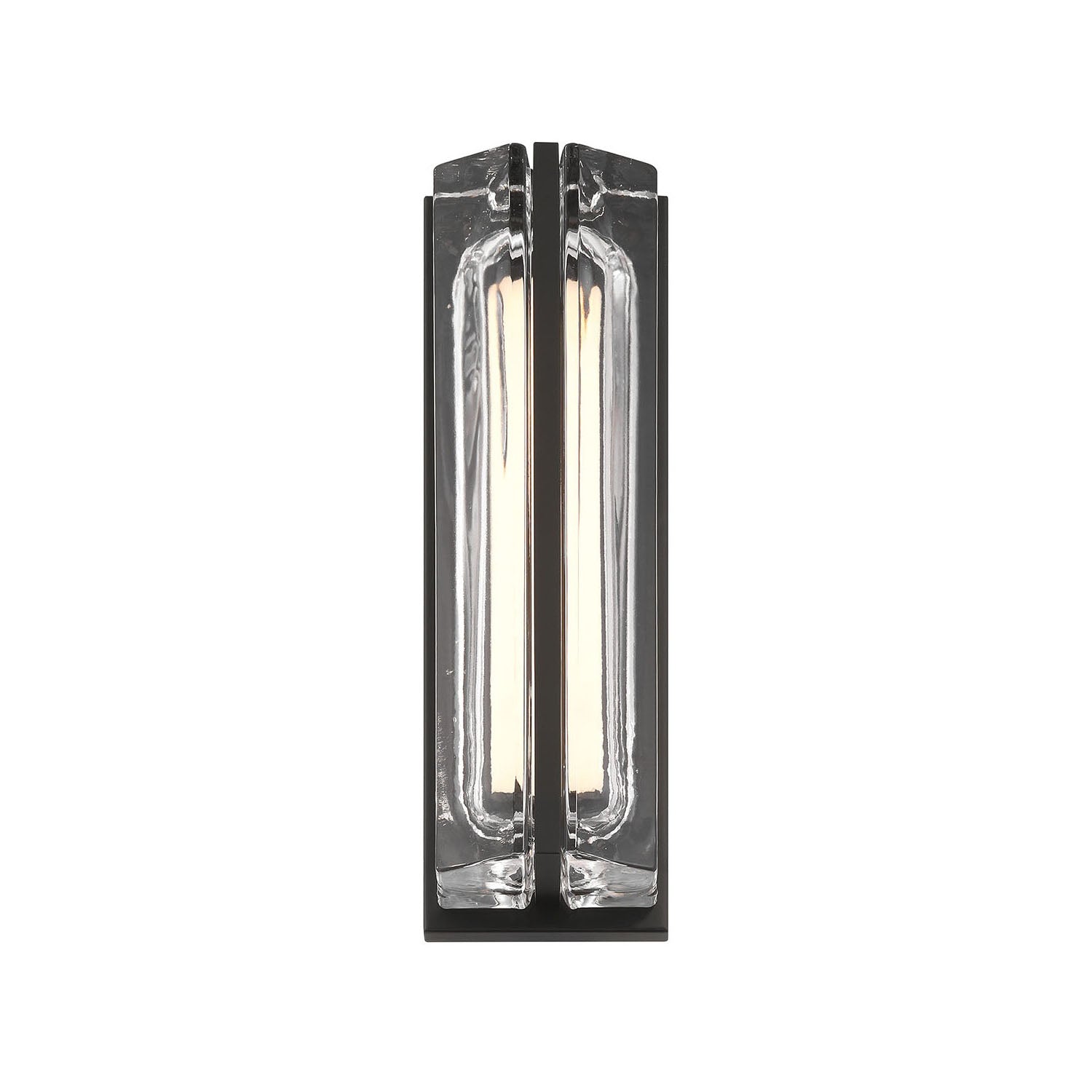 • Architectural faceted glass block design with matte black finish featuring a clear glass panel with defined edges for gentle, diffused illumination