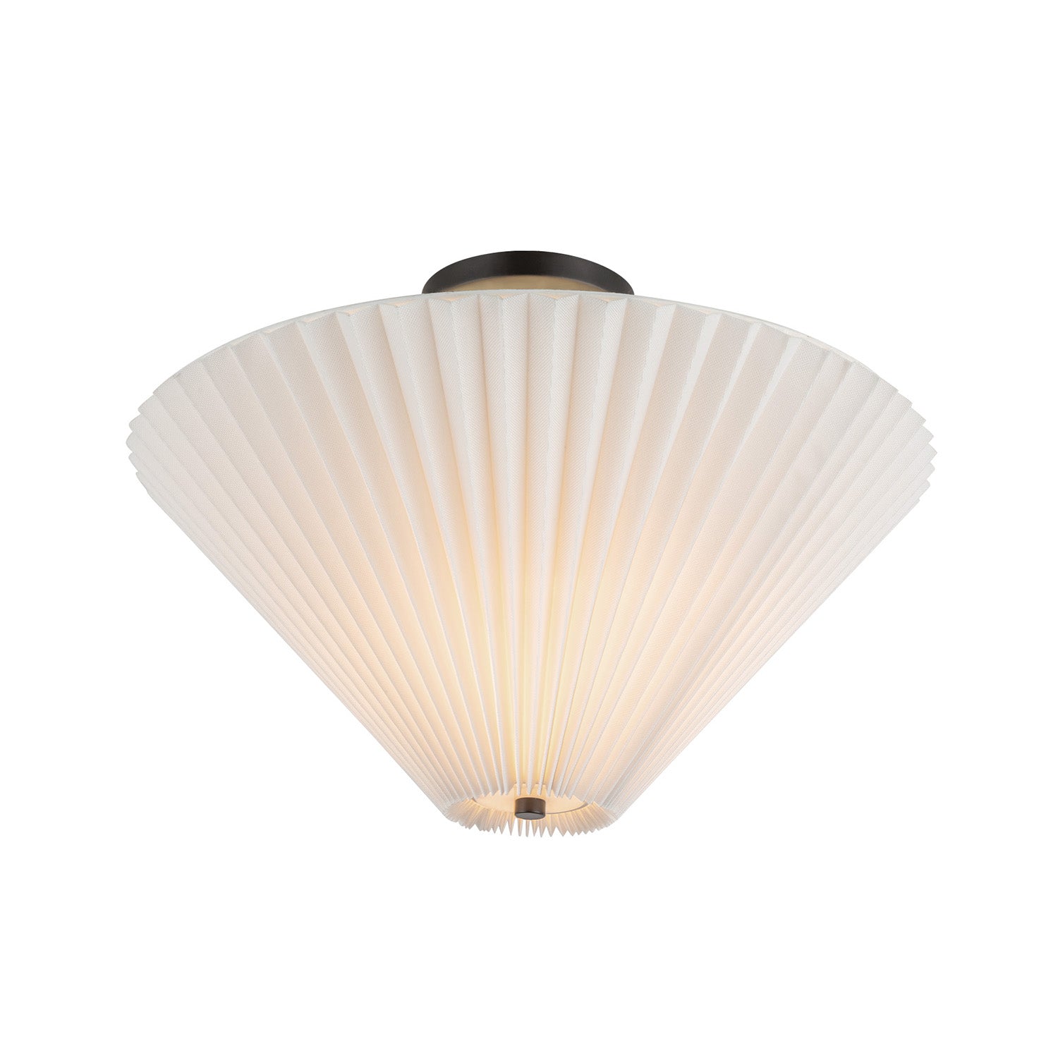 • The Sabina Semi-Flush Mount features an inverted conical design in matte black finish with a pleated white linen shade