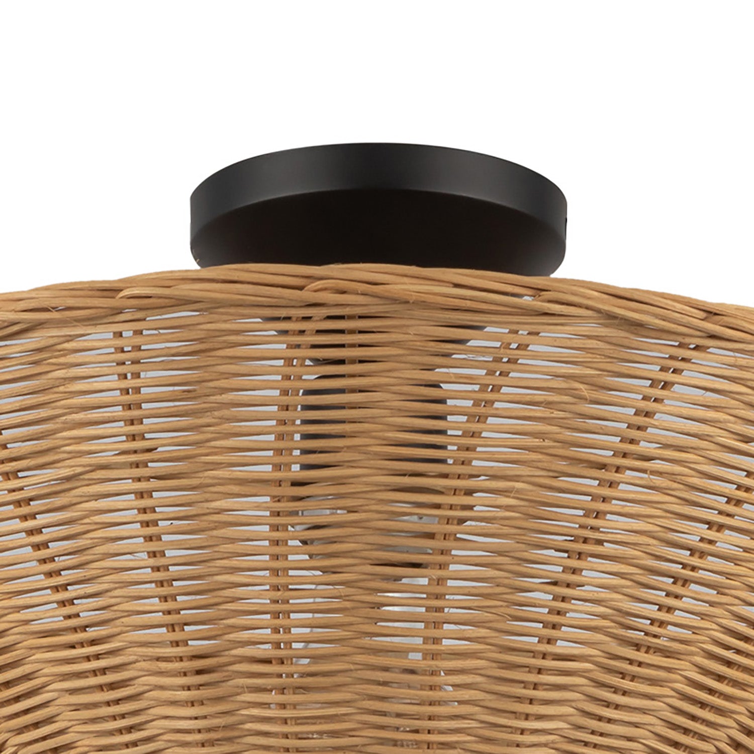 Sabina Semi-Flush Mount 16", Matte Black with Rattan Shade