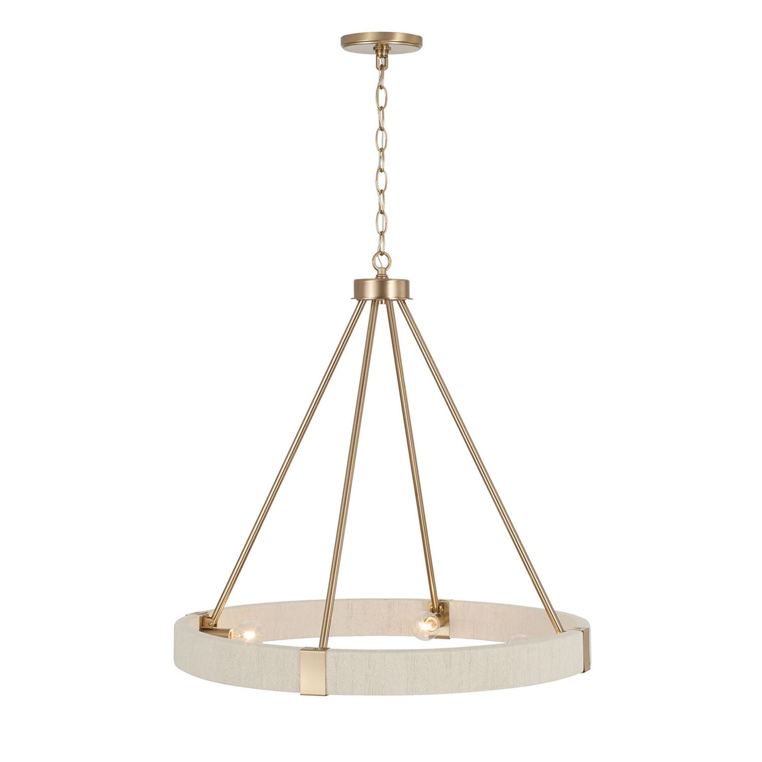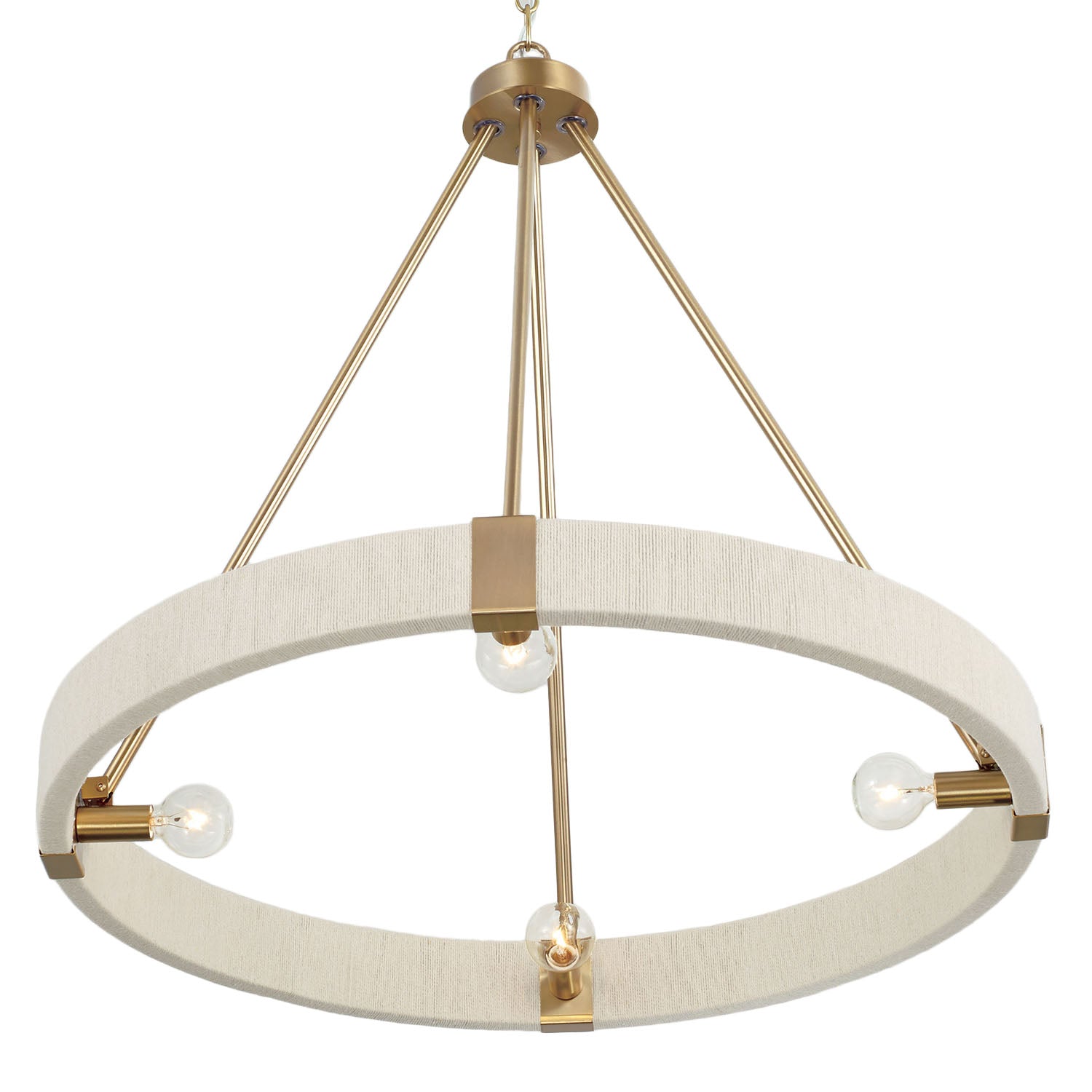 • Four candelabra bulbs within a geometric ring provide brilliant illumination enhanced by rope detailing
