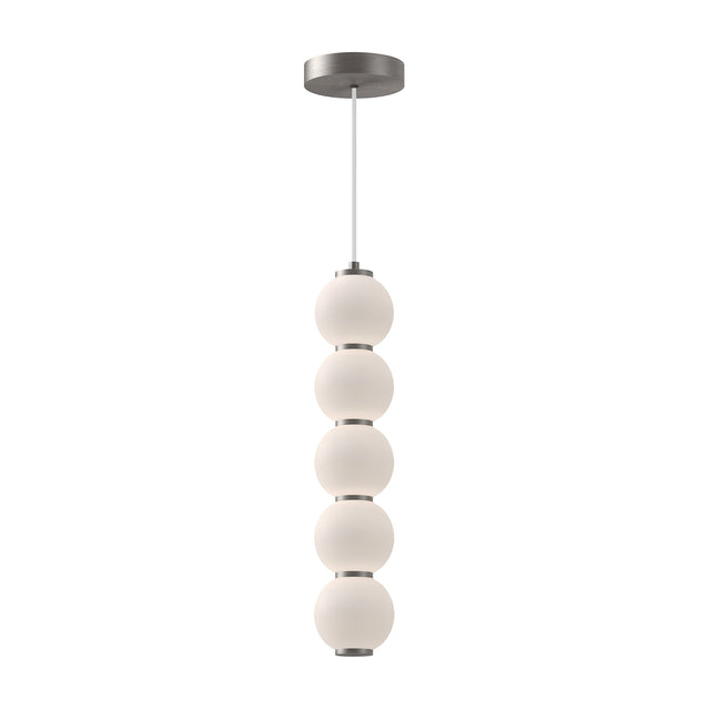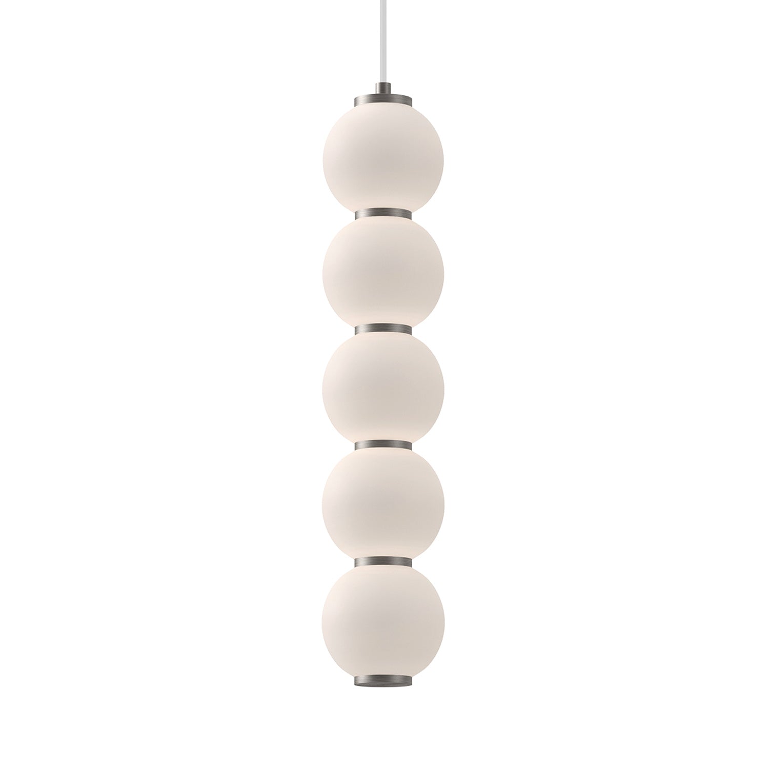 • The Shai LED Pendant features five stacked opal glass spheres, brushed nickel finished hardware, and integrated LED technology