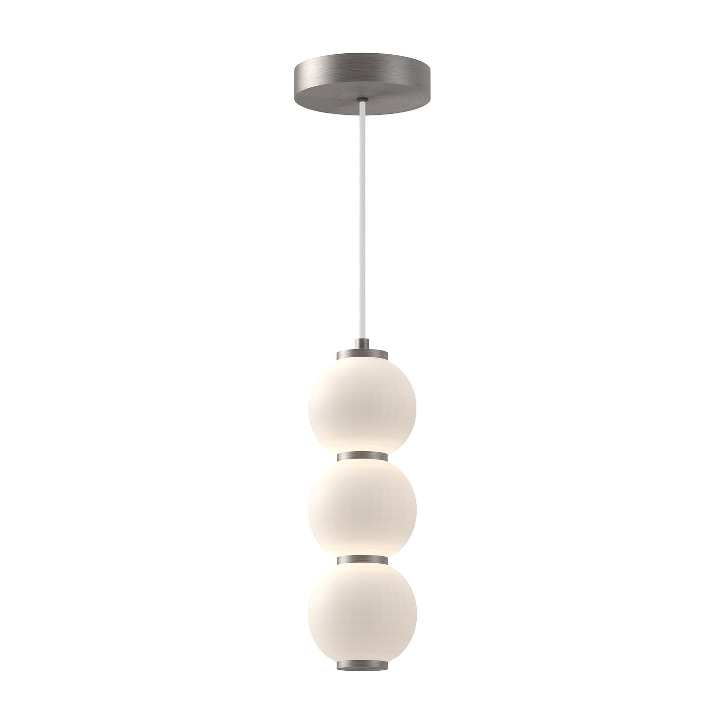 • The Shai LED Pendant features three stacked opal glass spheres, brushed nickel finished hardware, and integrated LED technology
