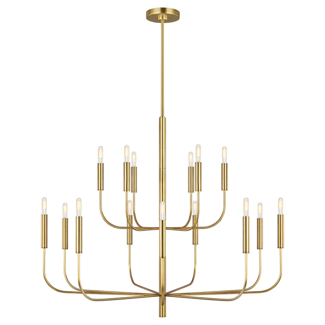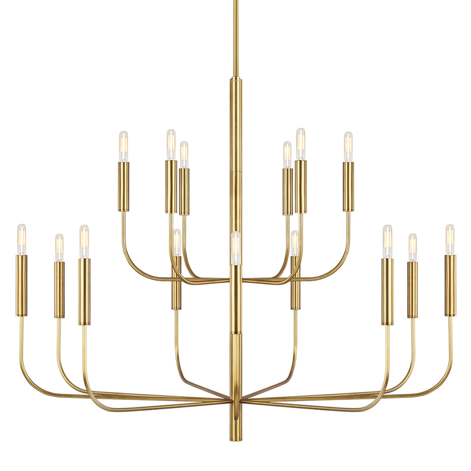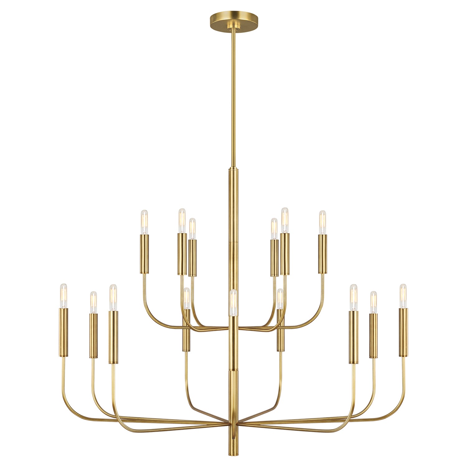 Thayer 15 Light Two-Tier Chandelier 49", Modern Brass
