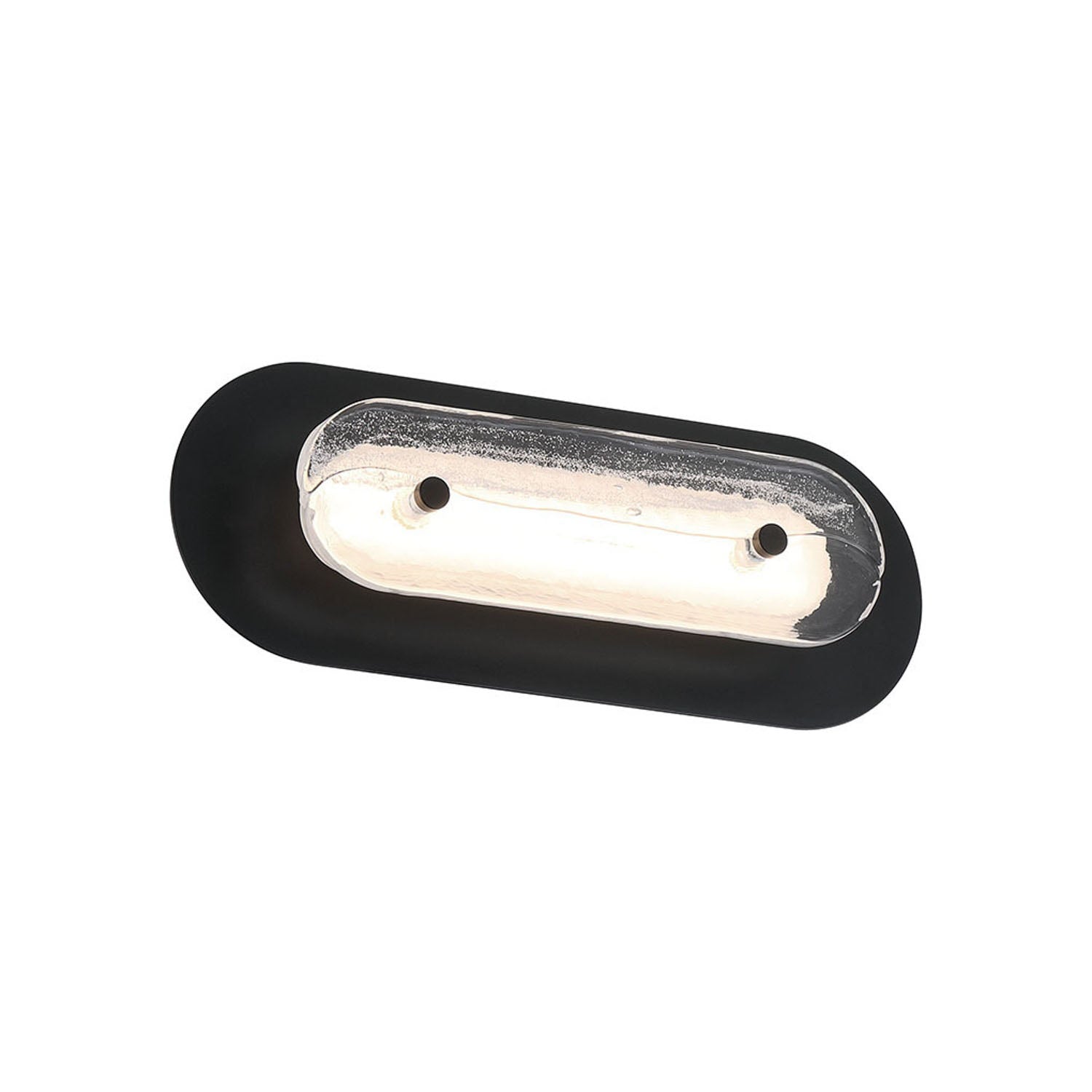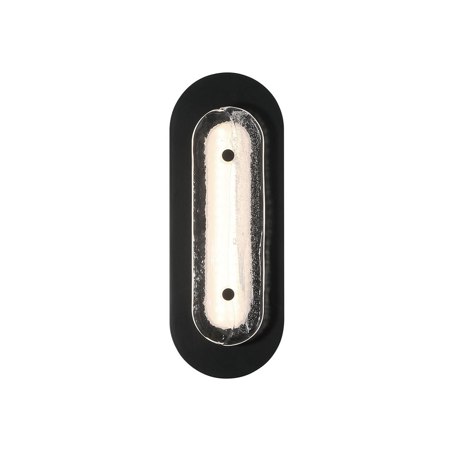 • Oval form with a powder-coated black frame featuring textured glass that creates mesmerizing light patterns and halo effects