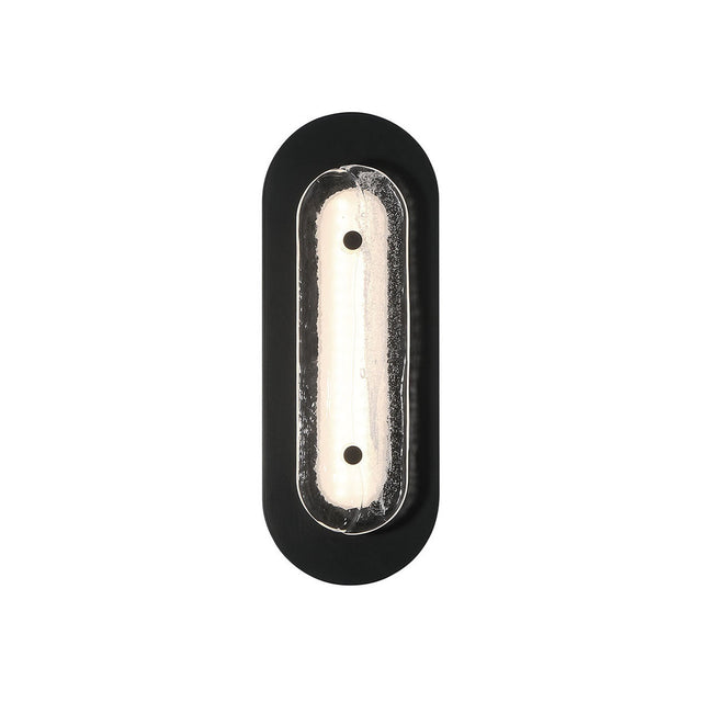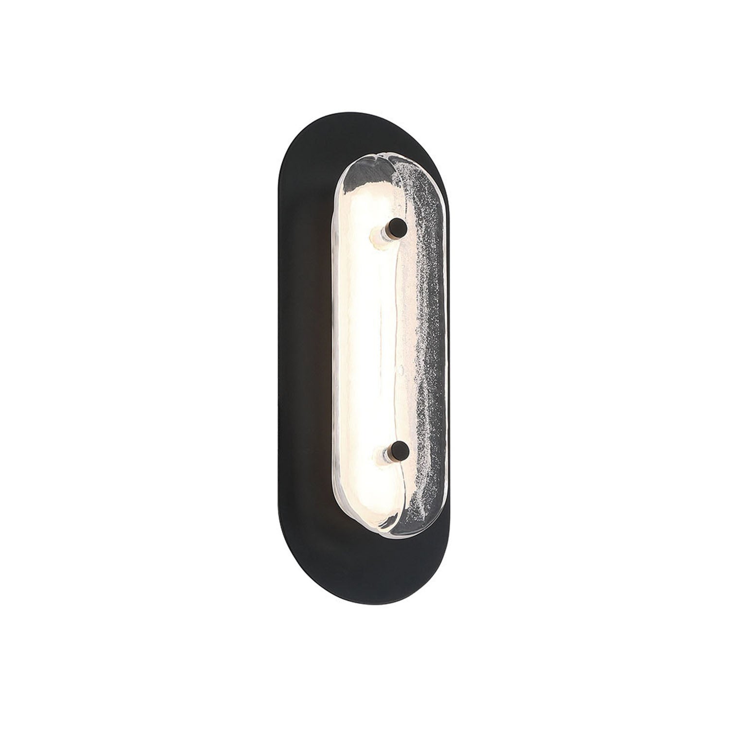 The Vance LED Outdoor Wall Light transforms exterior walls into illuminated art with its distinctive elongated oval form and bold powder-coated black frame. This elegant fixture showcases a textured glass center that creates mesmerizing light patterns when illuminated, while the surrounding black frame casts a beautiful halo effect that makes the entire piece appear to float effortlessly against the wall. The harmonious blend between the textured glass and black elements seamlessly merges vintage glamour with contemporary sophistication. At 16" long with a weather-resistant design, this sconce delivers both striking appeal and exceptional practical illumination for outdoor spaces.