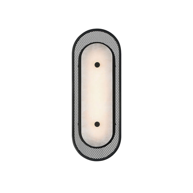 The Vance LED Wall Sconce transforms ordinary walls into illuminated art with its distinctive elongated oval form and bold matte black detailing. This elegant fixture showcases an alabaster center that creates a gentle, uniform glow when illuminated, while the surrounding metal mesh matte black frame casts a beautiful halo effect that makes the entire piece appear to float effortlessly against the wall. The harmonious blend between the natural alabaster and matte black elements seamlessly merges vintage glamour with contemporary sophistication. At 16" long with ADA-compliant design, this sconce delivers both striking appeal and practical illumination for contemporary interiors.