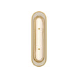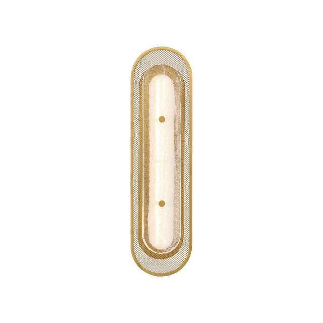 The Vance LED Wall Sconce transforms ordinary walls into illuminated art with its distinctive elongated oval form and warm brass detailing. This elegant fixture showcases a textured glass center that creates mesmerizing light patterns when illuminated, while the surrounding metal mesh brass frame casts a beautiful halo effect that makes the entire piece appear to float effortlessly against the wall. The harmonious blend between the textured glass and brass elements seamlessly merges vintage glamour with contemporary sophistication. At 22" long with ADA-compliant design, this sconce delivers both striking appeal and enhanced practical illumination for contemporary interiors.