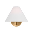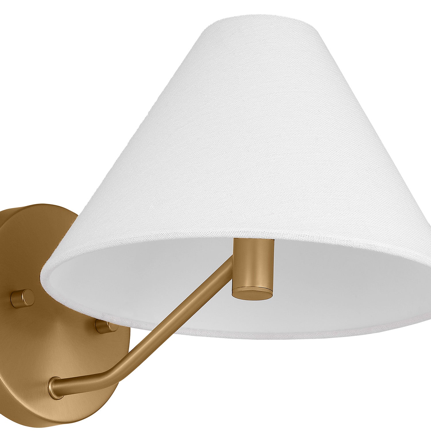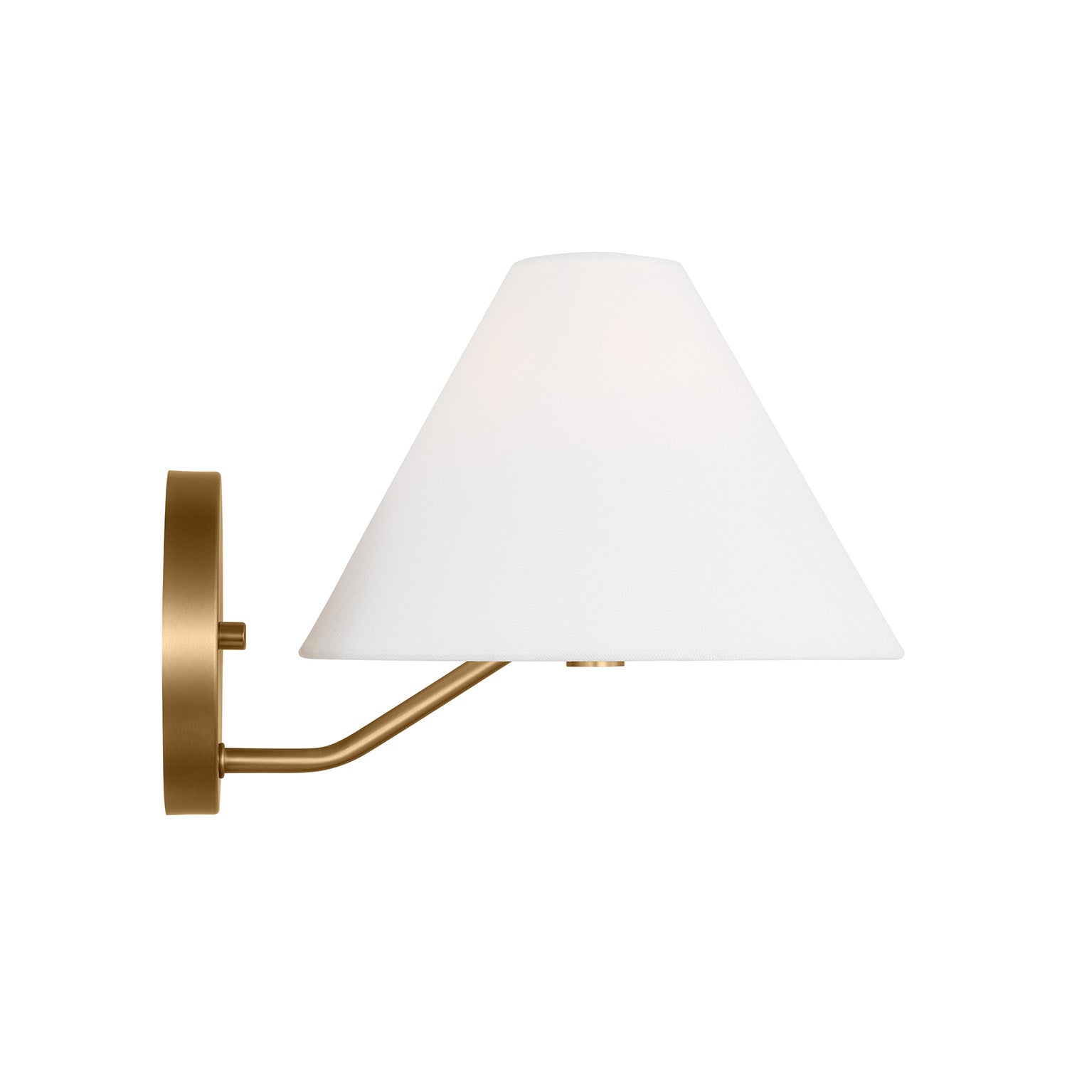 The Wallace Wall Sconce bridges the gap between traditional and modern aesthetics with its structured silhouette featuring a gracefully tapered arm that holds a white linen empire shade. This elegant 8" wall sconce offers a softly diffused glow perfect for hallways, bedrooms, bathrooms, and spaces seeking refined lighting with understated appeal. The satin brass finish brings warm elegance while the white linen shade provides beautiful, even illumination throughout the space. Damp-rated for added versatility, this sconce delivers both style and functionality for various environments. With its dimmable capabilities and substantial extension, this wall sconce transforms any space with distinctive style and performance.