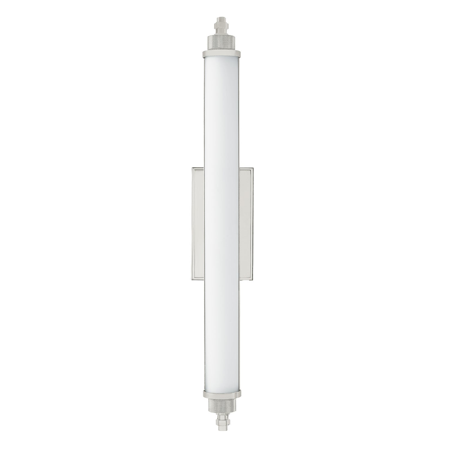 The Empire LED Wall Sconce 28" is a sleek fixture with high functionality, thoughtfully designed to bring tailored elegance to bath and powder rooms. This slender sconce features a single LED-lit opal matte glass tube supported by a refined central stem, creating a clean vertical silhouette. The brilliant Polished Nickel finish provides a fresh, mirror-like accent that perfectly complements the soft glow. Whether used individually or in multiples, this versatile piece offers a sophisticated lighting solution for modern transitional interiors.