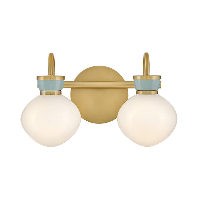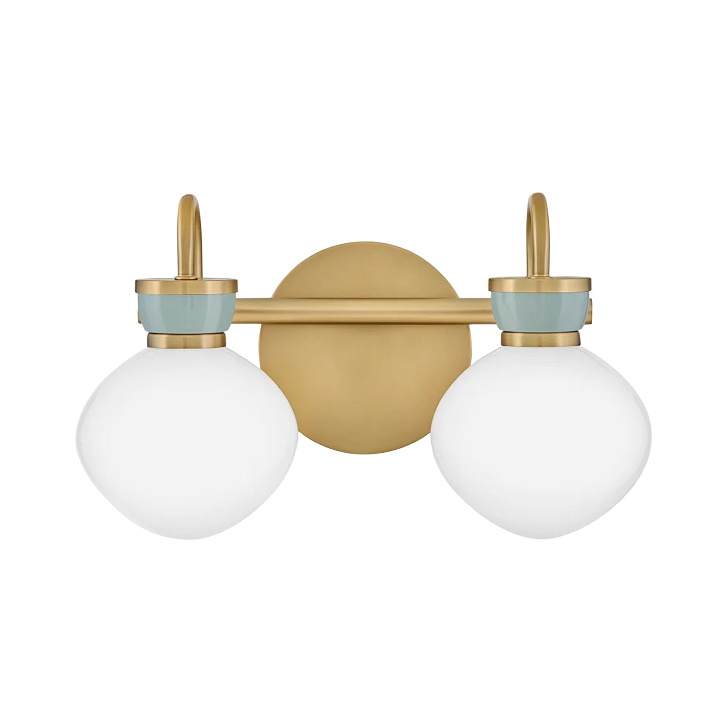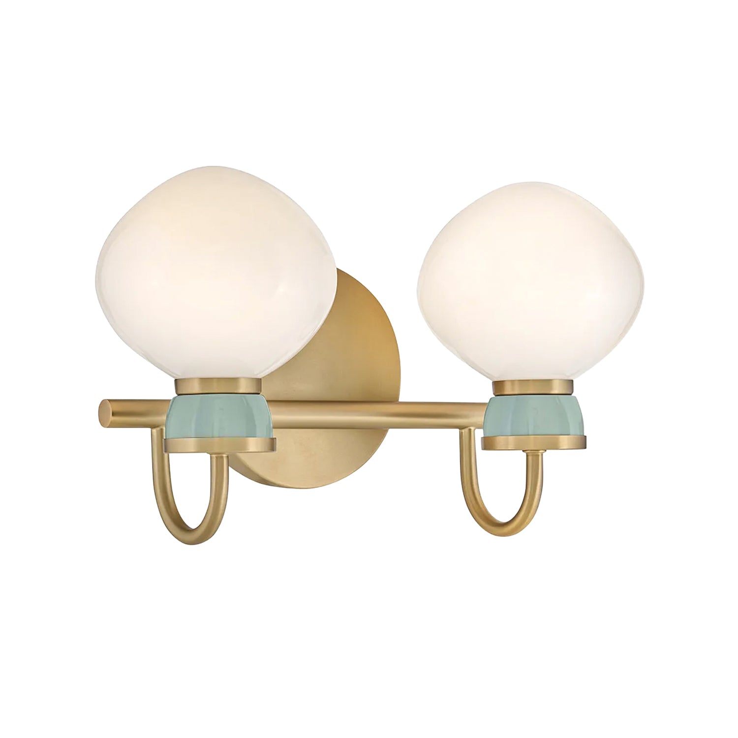Piper 2 Light Vanity, Satin Brass and Aquaverde