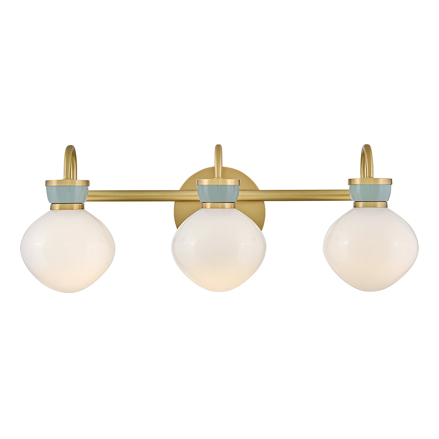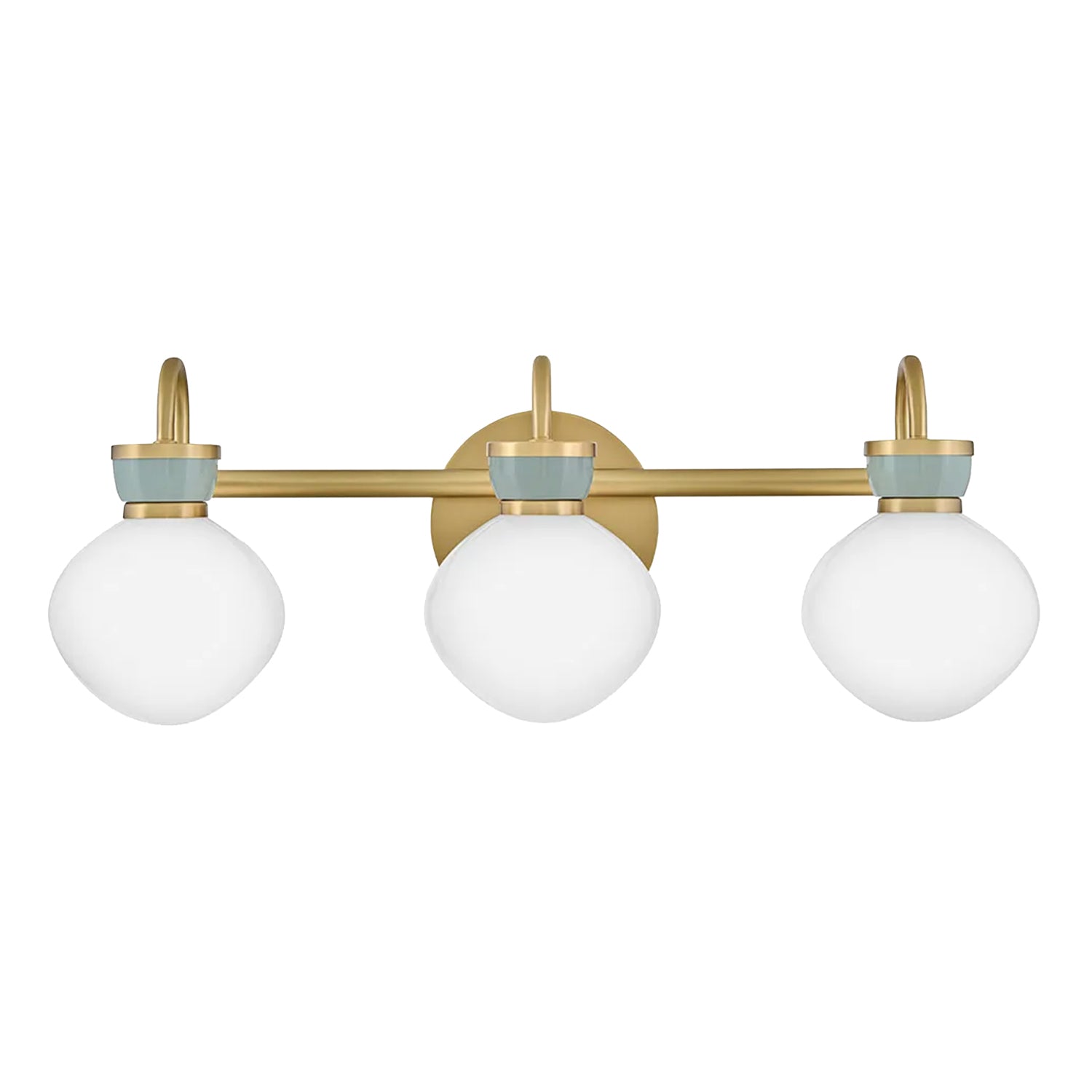 Piper 3 Light Vanity, Satin Brass and Aquaverde