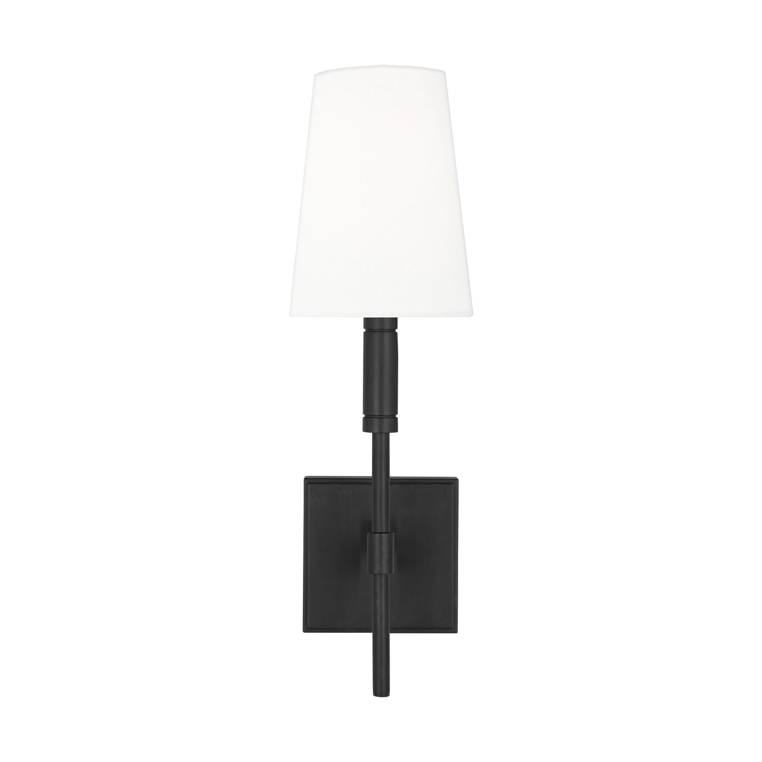 The Petra Wall Sconce makes a refined statement with its understated elegance and tailored look. The classic silhouette, featuring a single clean-lined arm and a tapered white linen shade, is both timeless and versatile. With its ETL damp rating, it is a perfect addition to a bathroom, living area, or hallway where enduring style and functional light are needed. The deep Aged Iron finish brings a classic, timeless feel that beautifully complements the fixture's elegant silhouette, adding both functional beauty and elegant appeal.
