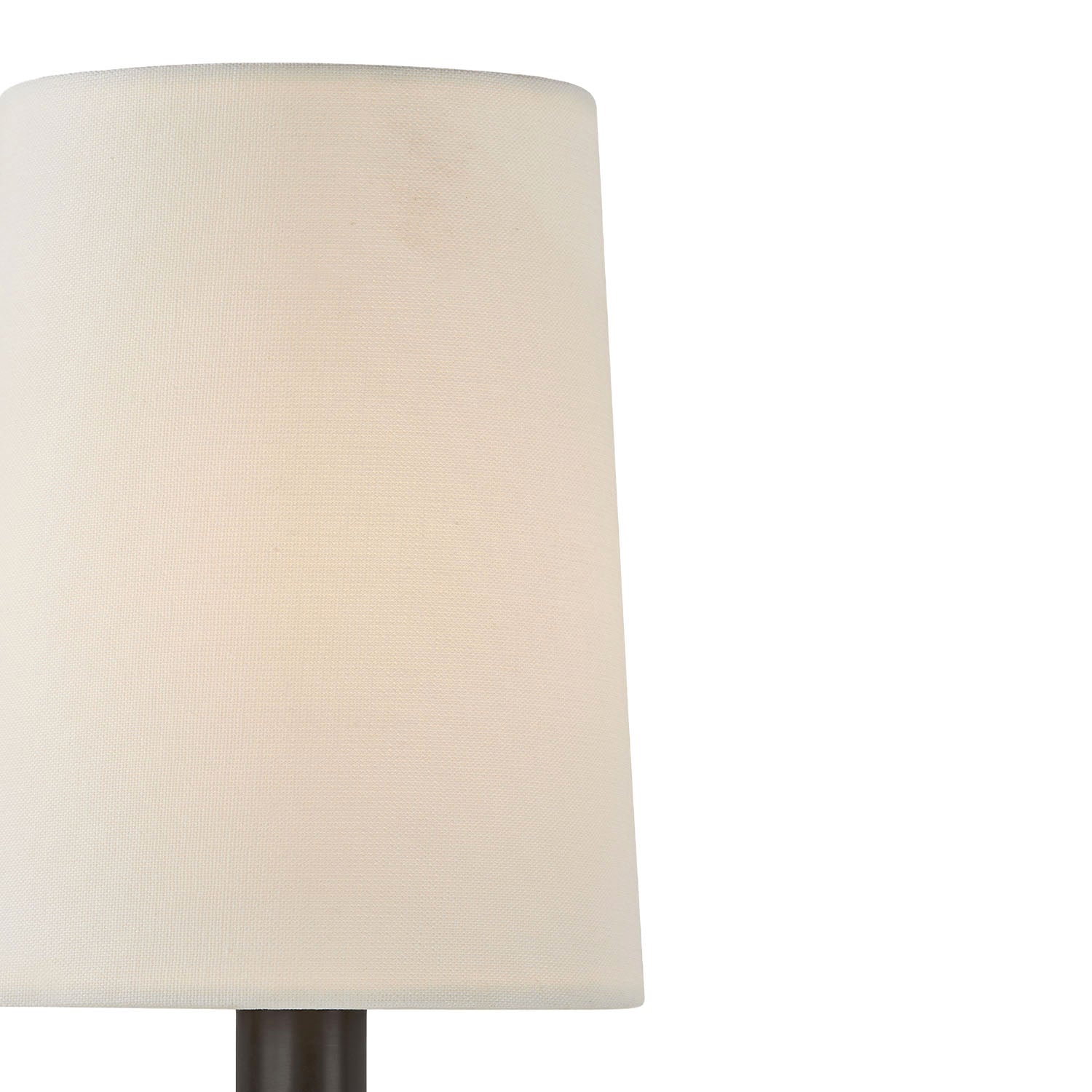 • Pratt features a single-light wall sconce with a slender U-shaped arm, wrapped metal detailing, and a crisp fabric shade for a refined, antique-inspired look