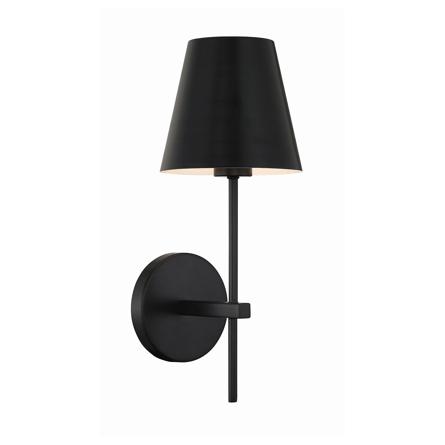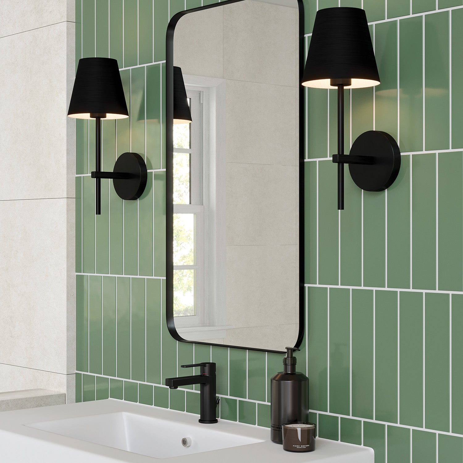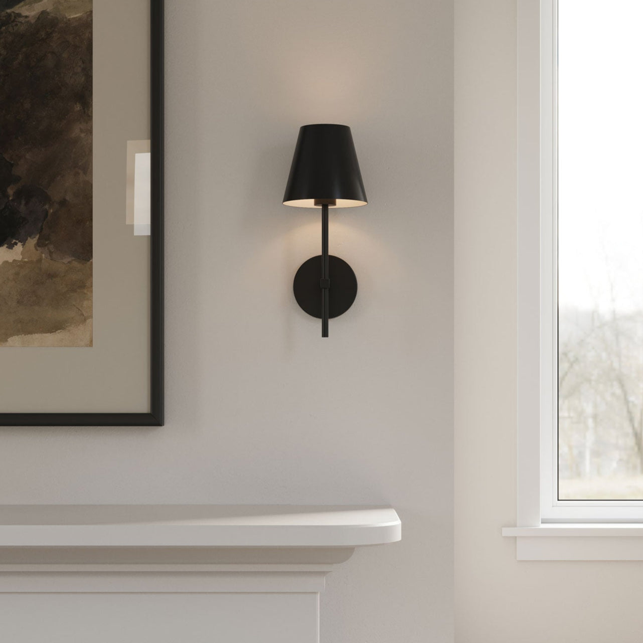 The Banks 15" Wall Sconce in matte black offers sleek, slender lines and focused illumination, making it perfect for hallways, bedside use, or framing mirrors and artwork. The streamlined conical metal shade directs light precisely, adding both style and functionality to any room. Its sophisticated matte black finish enhances contemporary interiors, seamlessly blending with a variety of design styles. Damp-rated for bathrooms, this versatile sconce is equally well-suited for bedrooms, living rooms, or foyers, offering timeless design and practical lighting in one elegant fixture.