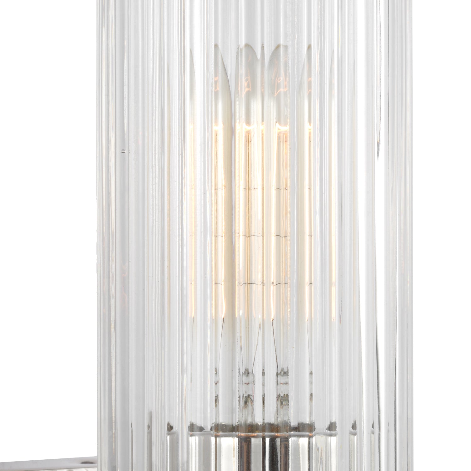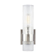 The Barclay Wall Sconce makes a sophisticated statement with its elegant, vertical design. A single clear fluted glass shade forms a refined look that is anchored by a strong, central band. The fixture is thoughtfully designed to cast a unique, diffused glow, providing ample illumination for a bathroom vanity, hallway, or living space. With its ETL damp rating, it adds both functional beauty and versatile appeal to any interior. The brilliant Polished Nickel finish offers a sleek, reflective sheen that beautifully complements the fixture's elegant silhouette. This striking sconce is a perfect blend of style and functionality, adding a touch of refined elegance to your interior.