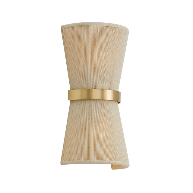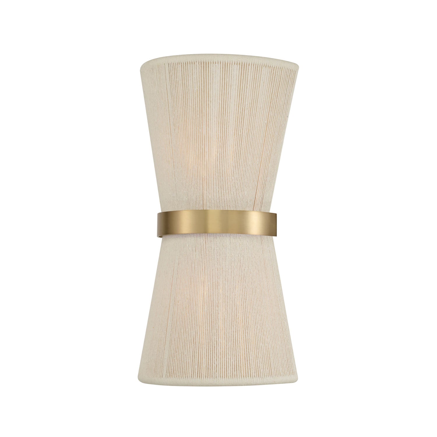 The Beacon 2 Light Wall Sconce brings artisanal luxury to any space with its distinctive hourglass silhouette and refined patina brass with natural rope finish. The aged patina brass complements the natural rope wrapping to create warm, textured illumination perfect for hallways, powder rooms, or accent lighting. Featuring a striking double-cone form enhanced by handcrafted rope detailing, this sophisticated fixture delivers both organic character and modern elegance with timeless appeal. The patina brass finish creates weathered richness that elevates any space with artisanal sophistication. The Beacon wall sconce combines textural craftsmanship with refined materials to create a distinctive lighting accent that brings handcrafted elegance to your space.