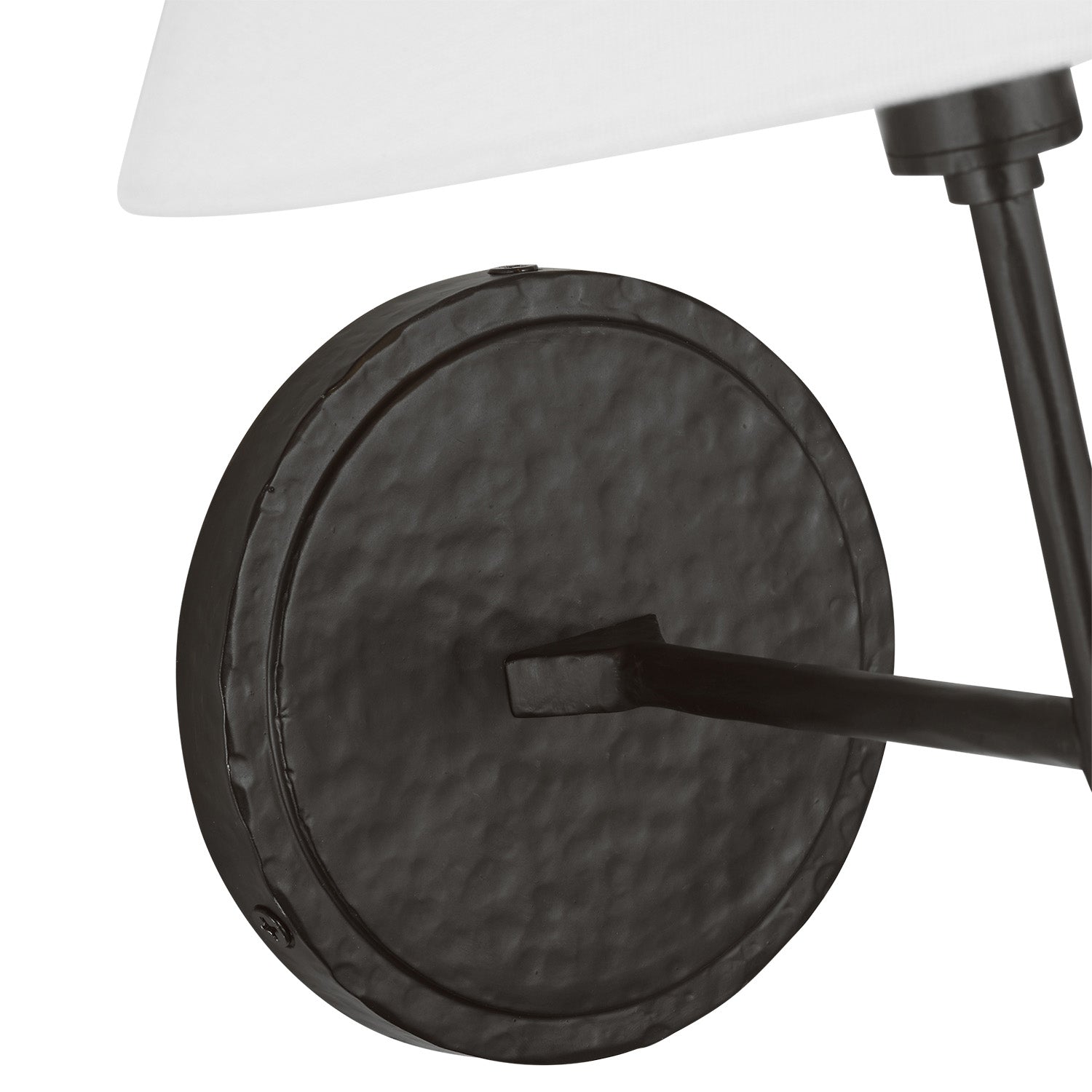 • White linen shade provides soft, diffused illumination with timeless appeal