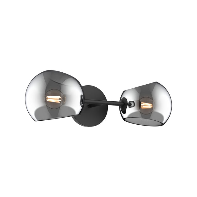 Flynn 2 Light Wall Sconce, Matte Black with Mirrored Smoke Glass