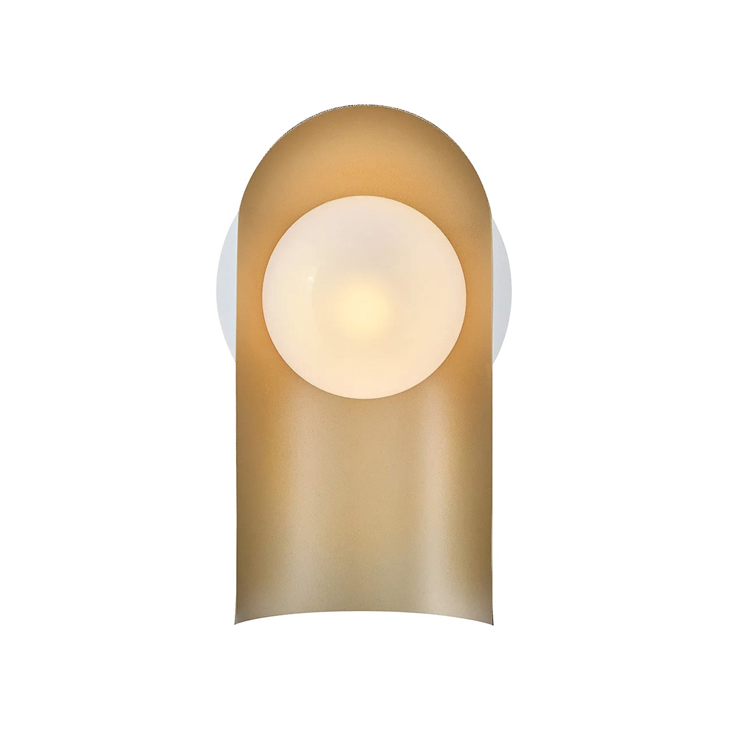 The Kassidy Wall Sconce is a modern artistic light fixture that makes a sophisticated statement with its unique, structural silhouette. The fixture is defined by a bold, curved White metal shield that cradles a soft Opal Glass globe, creating a striking contrast and providing indirect, ambient illumination. With its ETL damp rating, this bathroom light is an ideal choice for a vanity area, hallway, or bedside. The sophisticated two-toned finish of White and Satin Brass creates a dynamic, tailored contrast, resulting in a look of enduring style and timeless elegance. This striking contemporary sconce delivers enduring style and a perfect blend of elegance and simplicity.