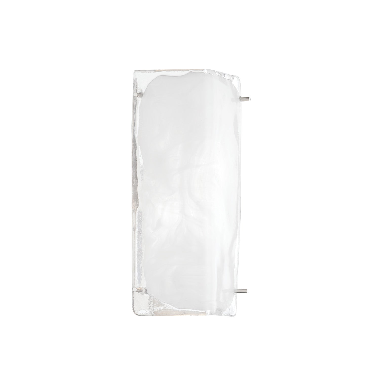 The Kira Wall Sconce 13" is striking in design and features an alluring geometric-shaped body with graceful polished nickel detailing. The polished nickel finish delivers contemporary elegance to this wall mounted fixture while the clear glass with opal back creates beautiful textural contrast and soothing illumination. The angular silhouette and mixed glass treatment make this fixture a sophisticated focal point that enhances contemporary and transitional interiors. Perfect for hallways, bedrooms, or flanking mirrors and artwork, this wall sconce combines bold geometric form with elegant materials, casting warm and inviting light throughout any space.