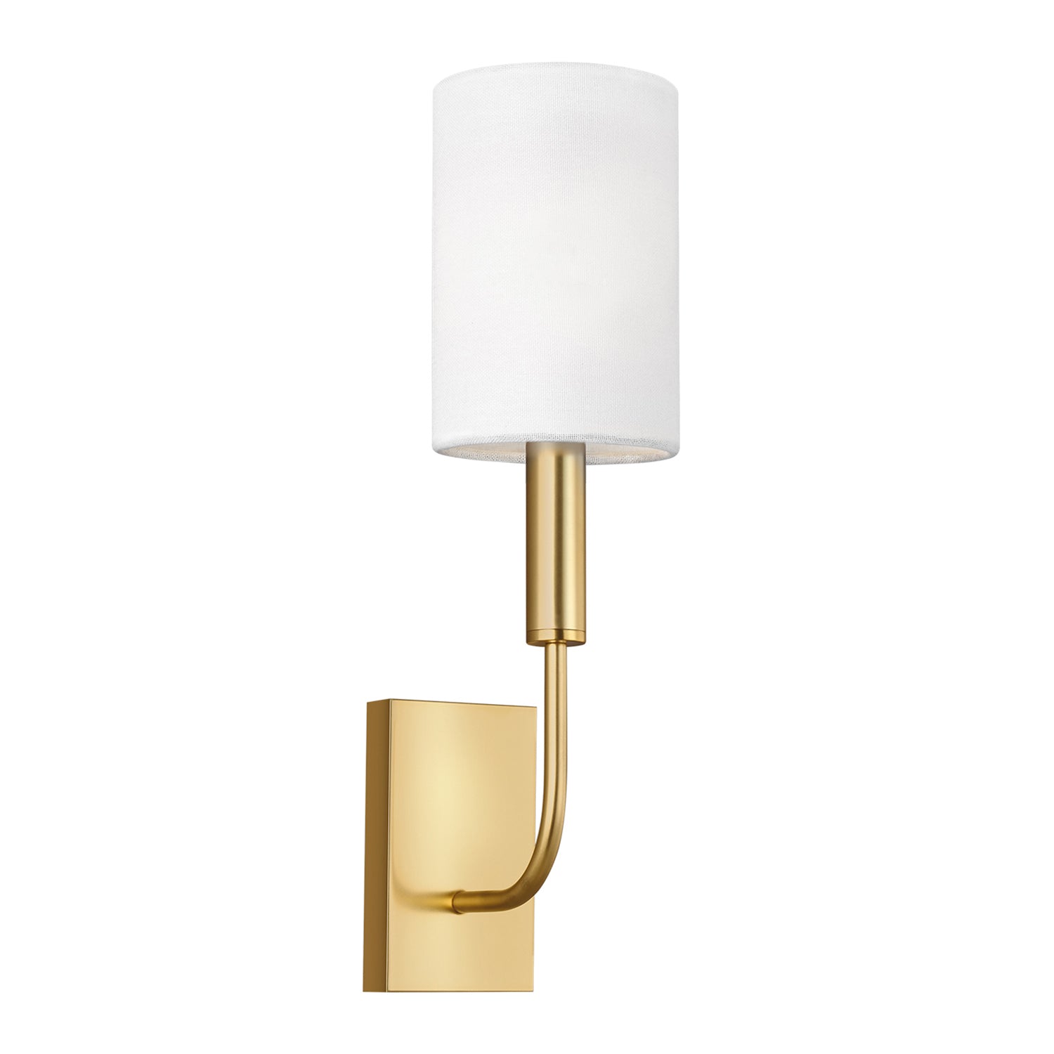 The Thayer Wall Sconce features graceful, seamless curvature and elongated tubular arm that supplies focused lighting for your daily needs while adding a layer of style to your home's decor. This elegant 14" wall sconce showcases the classic minimalist silhouette with fluidity and modern appeal, perfect for hallways, bedrooms, bathrooms, and areas seeking refined lighting with contemporary sophistication. The modern brass finish brings warm elegance while the white linen shade provides soft, diffused illumination throughout the space. Damp-rated for added versatility, this sconce delivers both style and functionality for various environments. With its dimmable capabilities and substantial extension, this wall sconce transforms any space with distinctive style and performance.