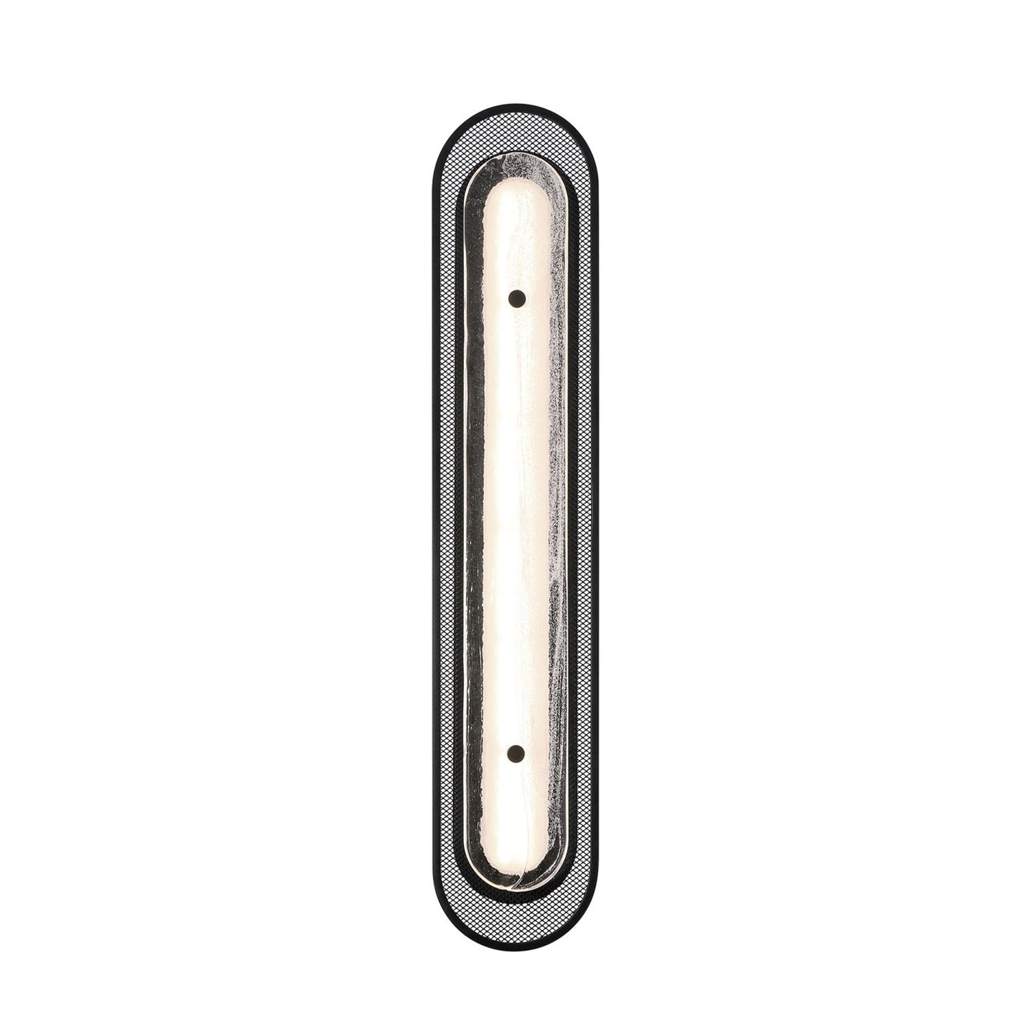 The Vance LED Wall Sconce transforms ordinary walls into illuminated art with its distinctive elongated oval form and bold matte black detailing. This elegant fixture showcases a textured glass center that creates mesmerizing light patterns when illuminated, while the surrounding metal mesh matte black frame casts a beautiful halo effect that makes the entire piece appear to float effortlessly against the wall. The harmonious blend between the textured glass and matte black elements seamlessly merges vintage glamour with contemporary sophistication. At 30" long with ADA-compliant design, this sconce delivers both striking appeal and superior practical illumination for contemporary interiors.