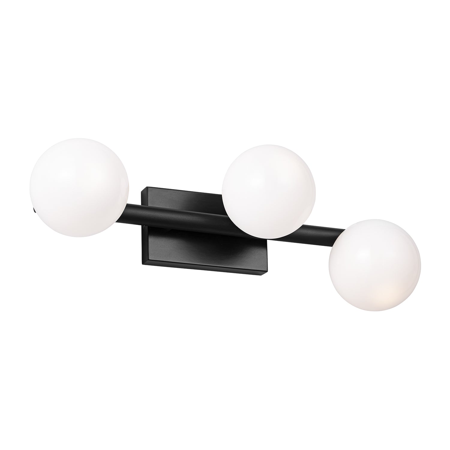 The Veya 3 Light Linear Wall Sconce combines simple metal structures with elegant milk glass globes that draw inspiration from floating bubbles, creating airy elegance with refined contemporary appeal. This elegant 16" linear wall sconce features three coordinated milk glass globes positioned along a clean horizontal framework, showcasing minimalist structures that create a refined statement, perfect for hallways, bedrooms, bathrooms, living spaces, and areas seeking distinctive wall lighting with artistic character. The aged iron framework creates sophisticated depth against the streamlined design, while the milk glass globes enhance the organic charm. With its damp-rated construction and thoughtful linear proportions, this expertly crafted wall sconce elevates any space with contemporary style and reliable performance.