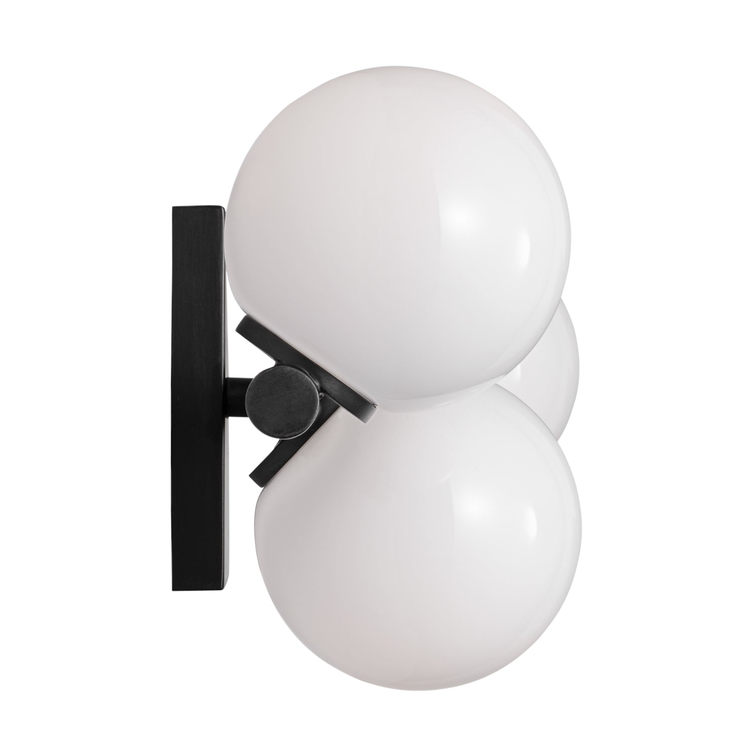 • Modern wall light features simple metal structures with elegant milk glass globes inspired by floating bubbles for airy elegance