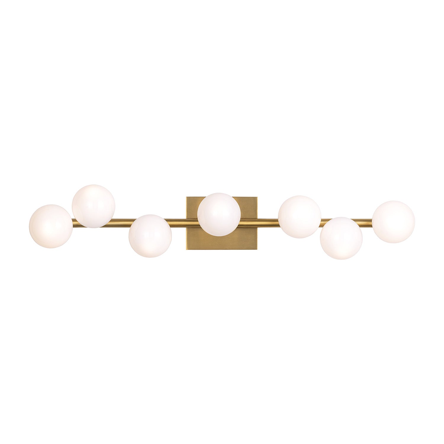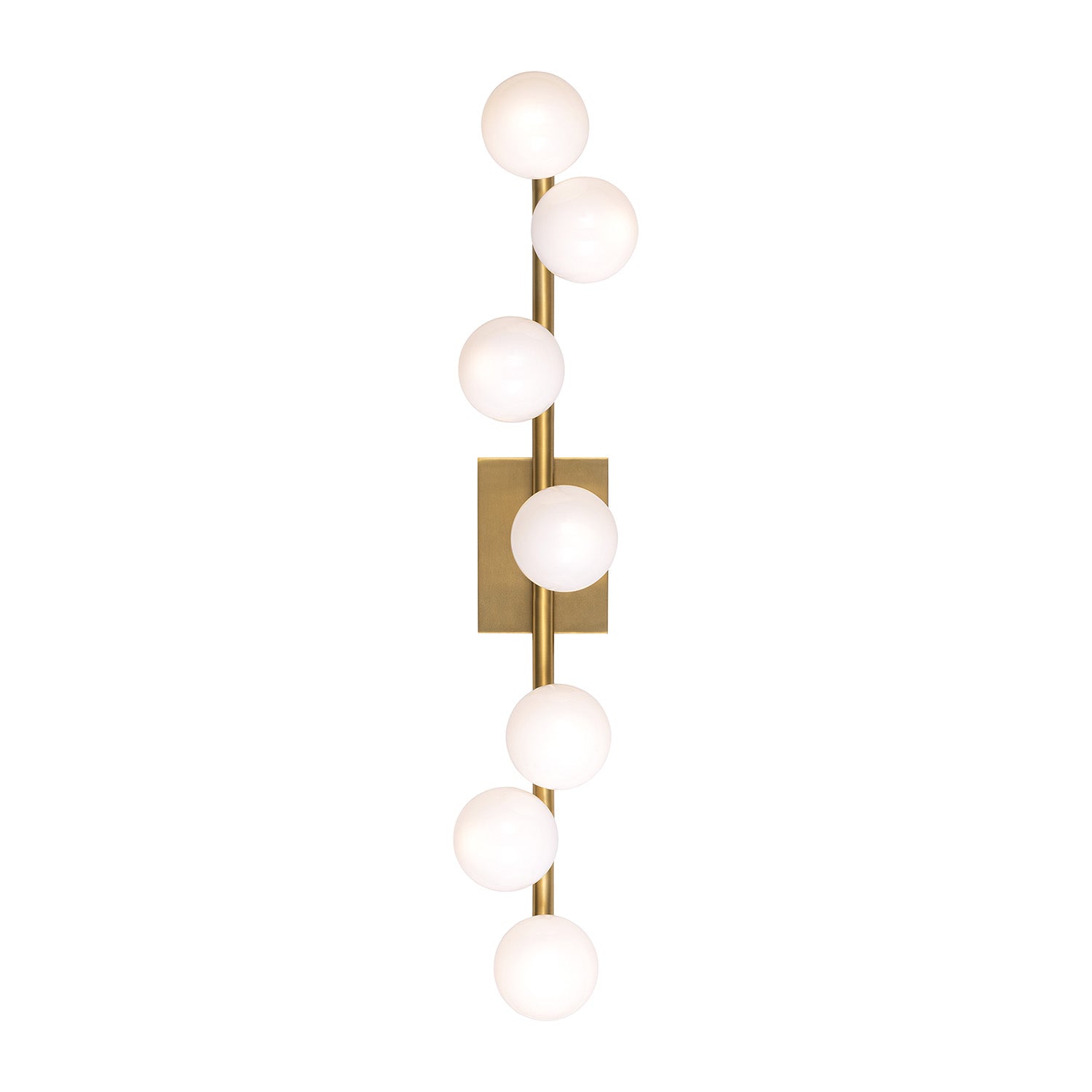 Veya 7 Light Wall Sconce 32", Modern Brass and Milk Glass