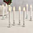 White 7" Flameless Resin Taper Candles with Silver Bases, Set of 8