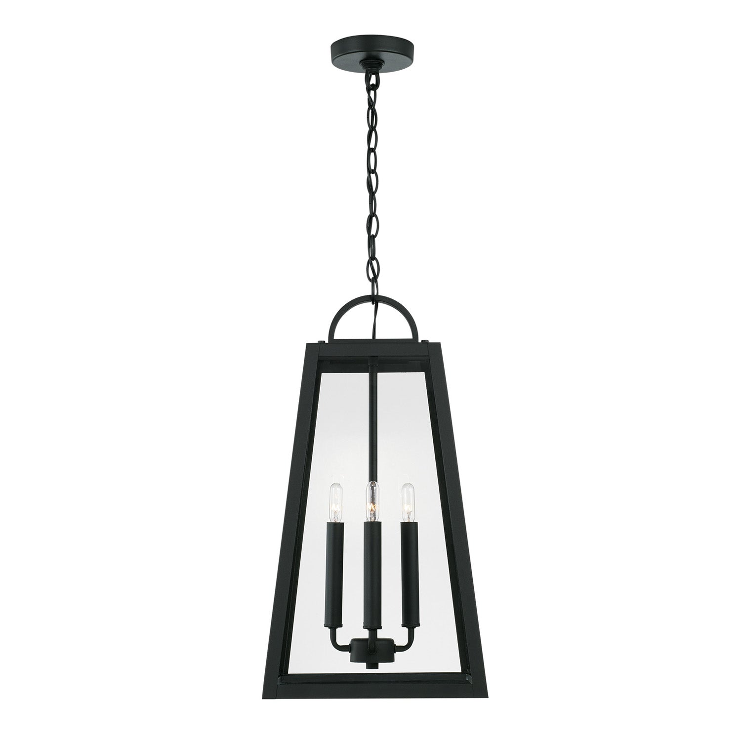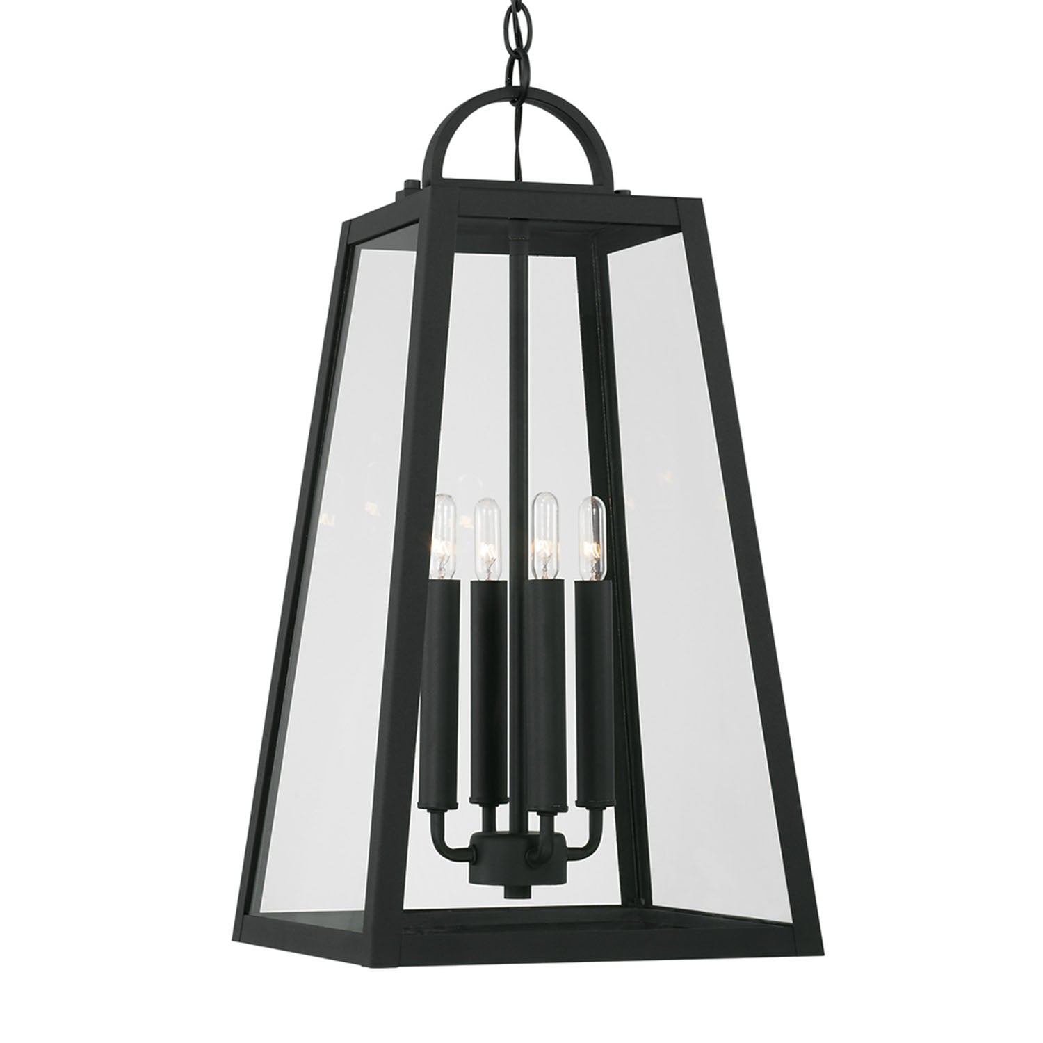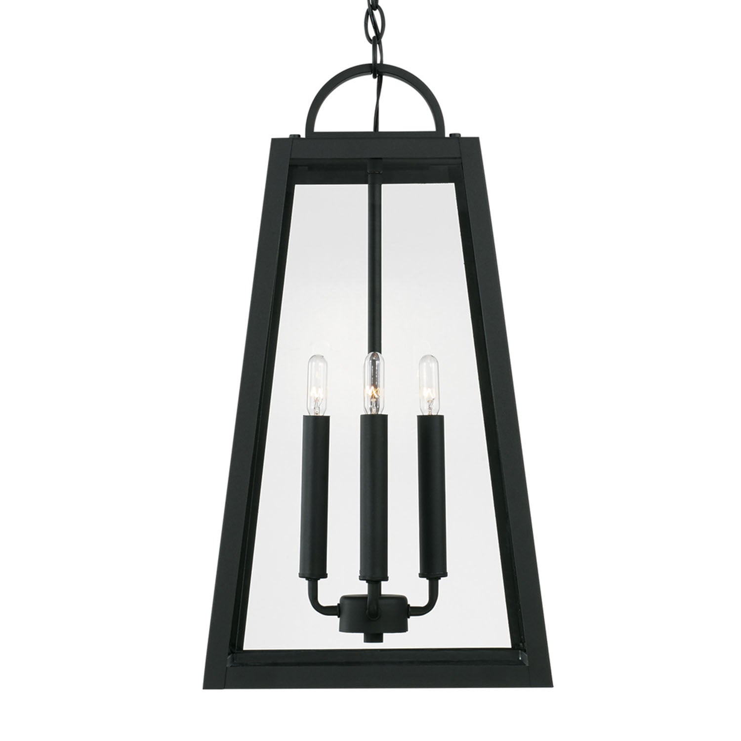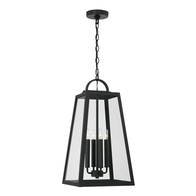 The striking geometric form of the Alden Outdoor Hanging Light elevates your exterior spaces with contemporary industrial sophistication. This sleek transitional fixture commands attention with its clean-lined tapered silhouette and clear glass panels framed in rich matte black. Perfect as a focal point for covered porches, patios, and entryways, this versatile hanging light transforms any outdoor space with modern elegance. The Alden Outdoor Hanging Light anchors a comprehensive collection designed to unify your exterior lighting scheme.