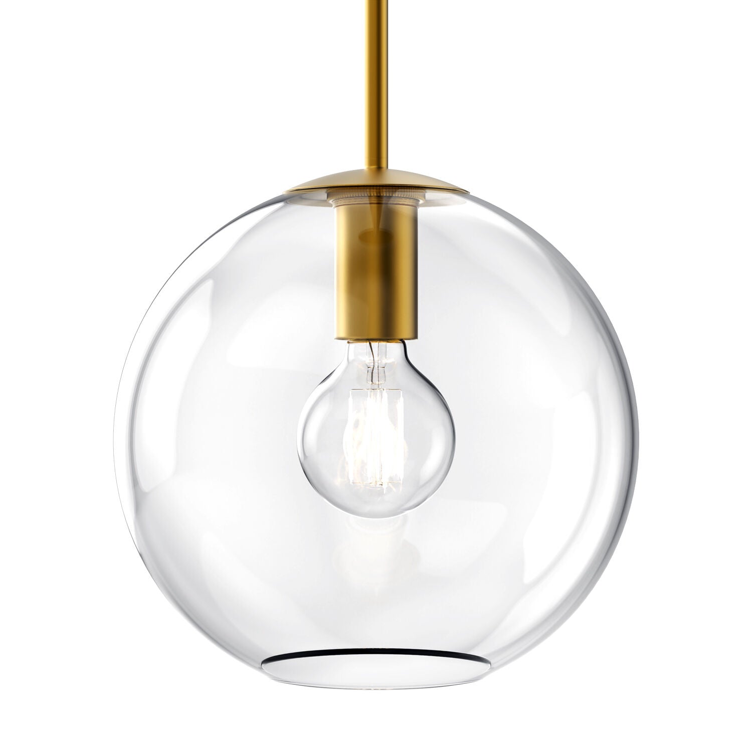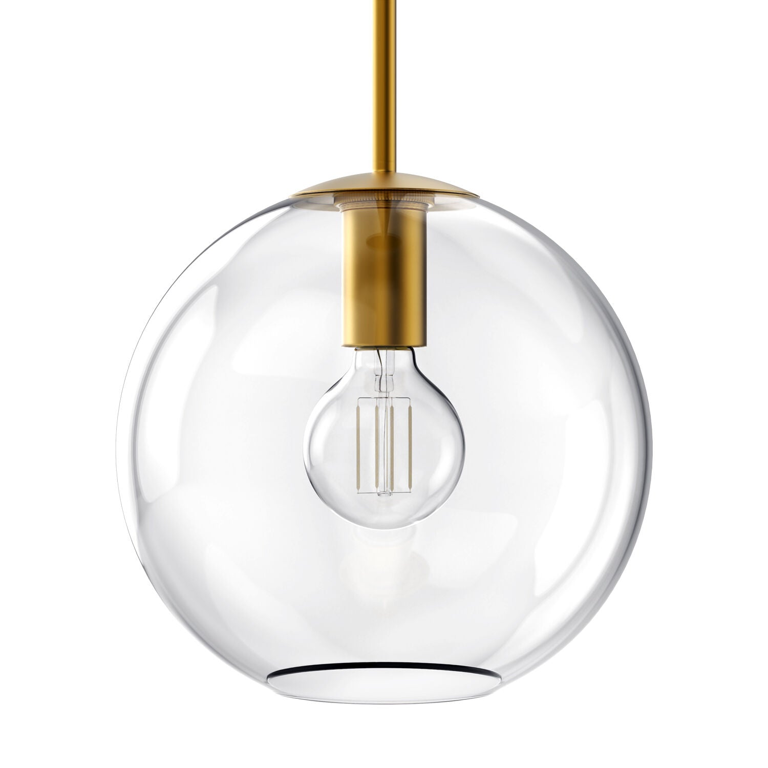 The Aria 10" Clear Globe Pendant Light is a beautiful, modern interpretation of the classic pendant ceiling light. Features a crystal clear glass globe shade encasing the seamless metal socket, and suspended by adjustable down rods hung from a circular canopy- all in a warm, satin brass finish. This updated fixture pairs superior materials with exceptional style, for a look that is both timeless and chic. Ideal in hallways with standard or tall ceilings, above a small table, or paired up over a kitchen island.