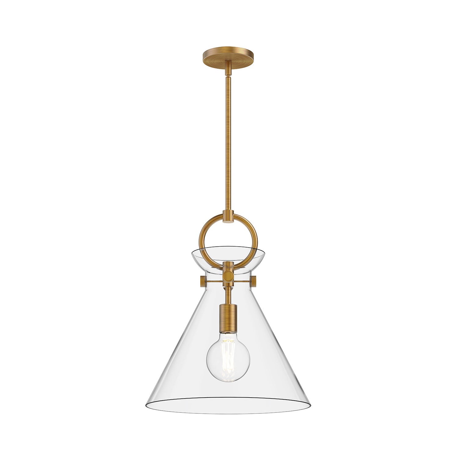 Aris Medium Pendant 14", Aged Brass and Clear Glass