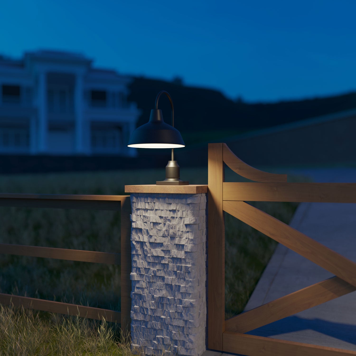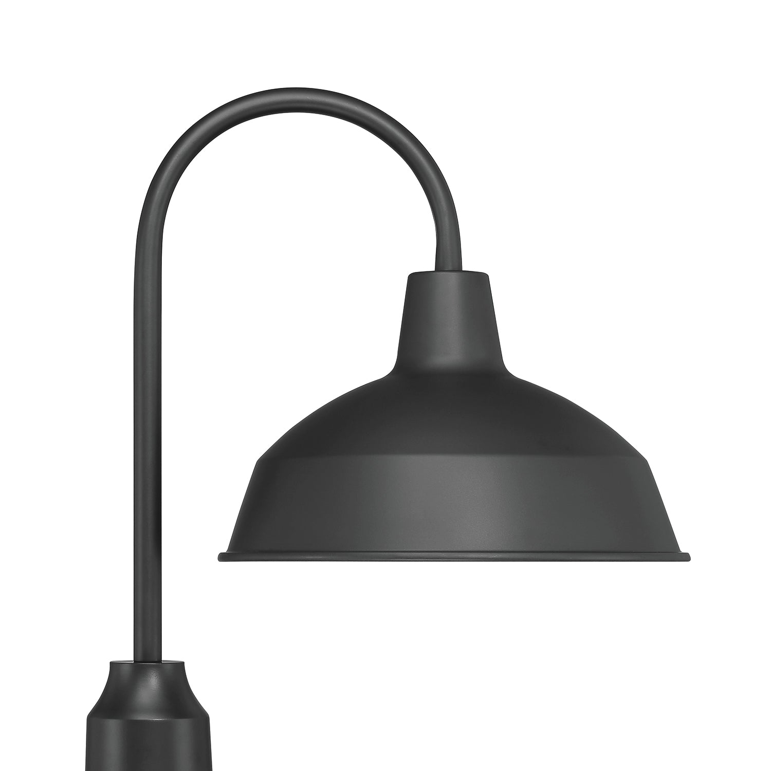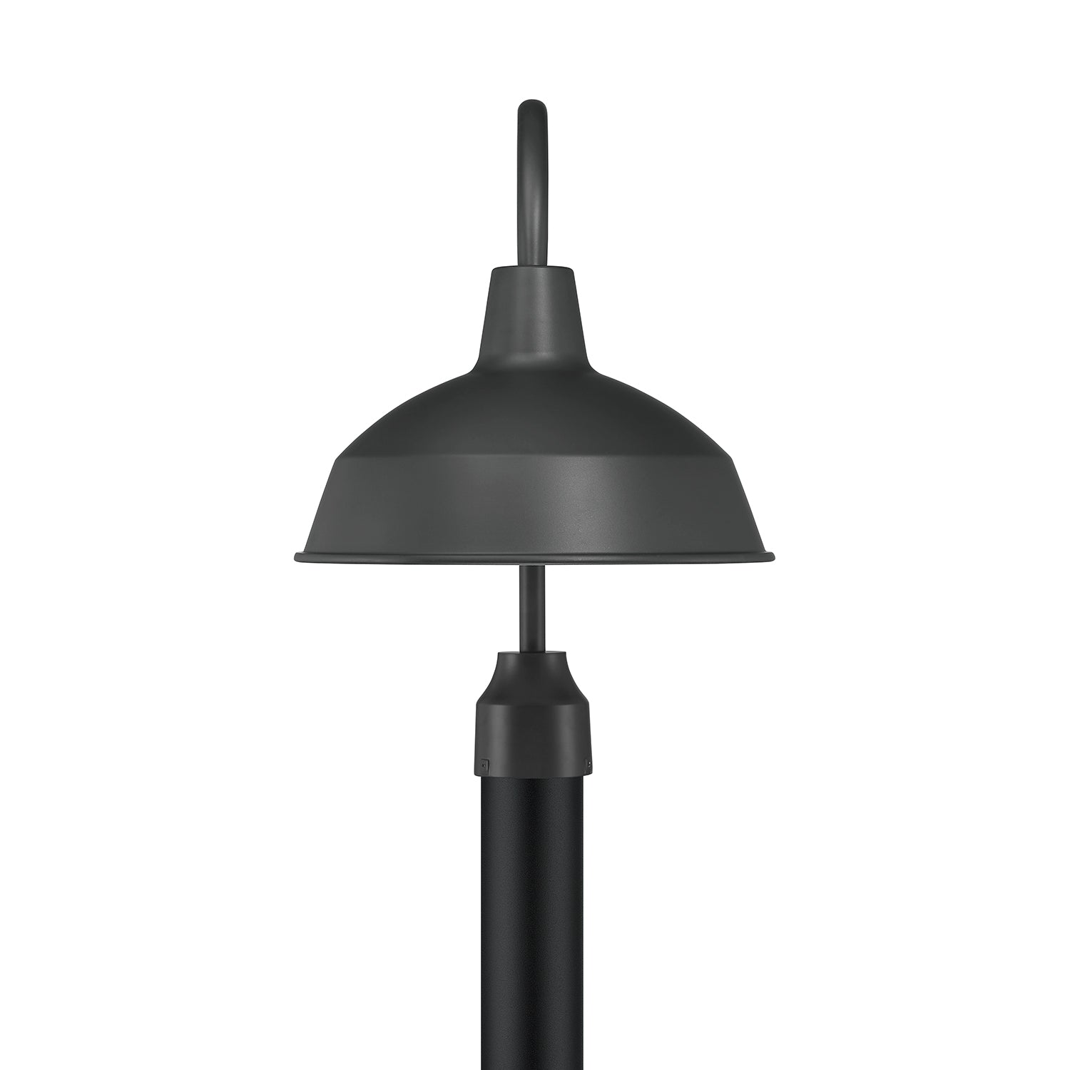 Inspired by turn-of-the-century industrial lighting, the Asher Outdoor collection brings a modern farmhouse flair to your home or commercial space. The Asher Post Light is rich in vintage styling with the graceful curves of the gooseneck arm and 12.5" modern shade. The matte black finish with white interior adds a refined note to this updated barn light. The fixture can be mounted atop of round metal post; alternately, it can be mounted to other surfaces with a pier mount. Both mounting options are sold separately and come in matte black. This post light will brighten any front yard, walkway, or outdoor living space. The Asher Post Light is part of a larger collection of fixtures to complete your lighting needs.