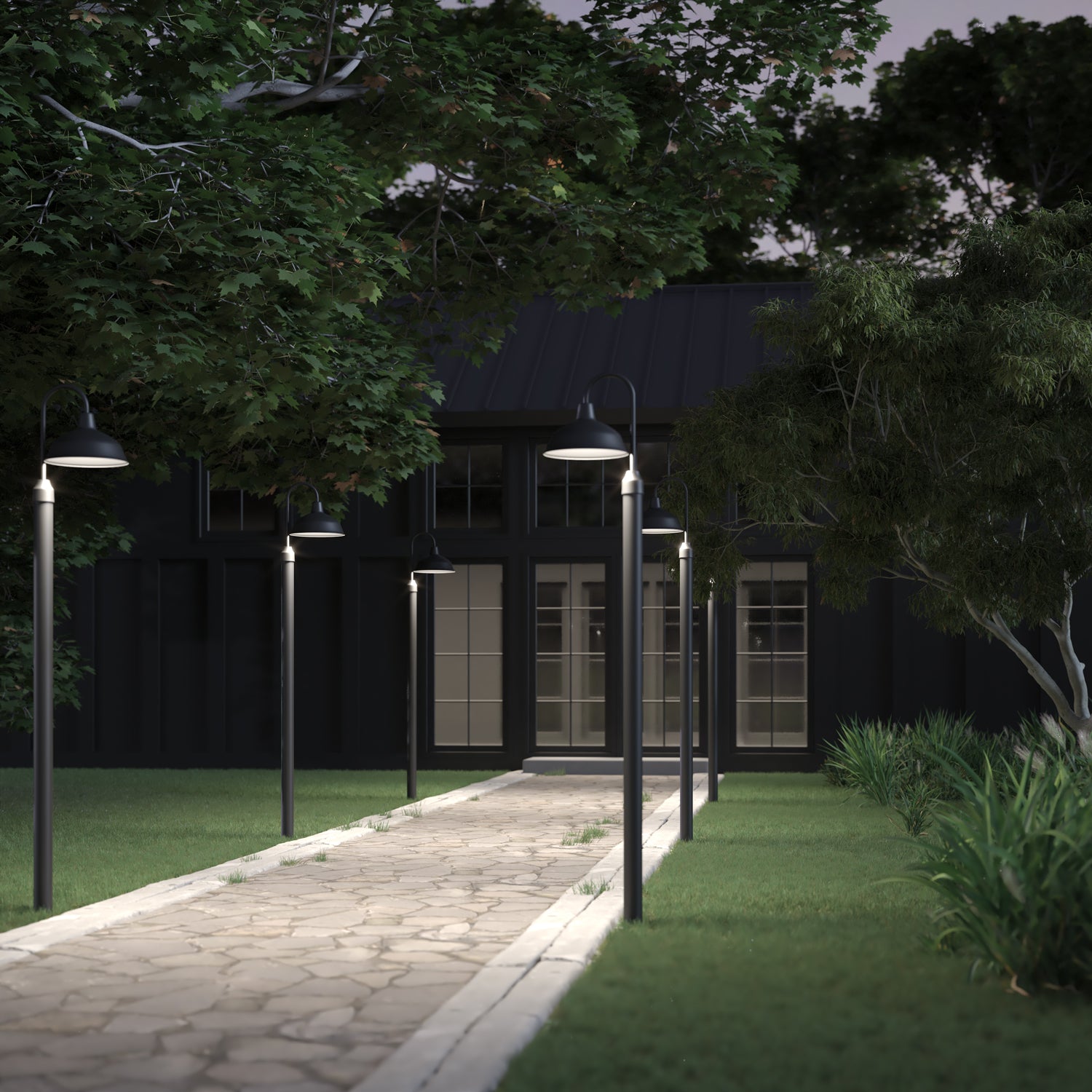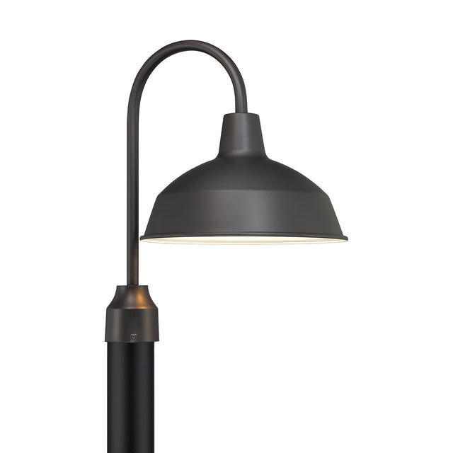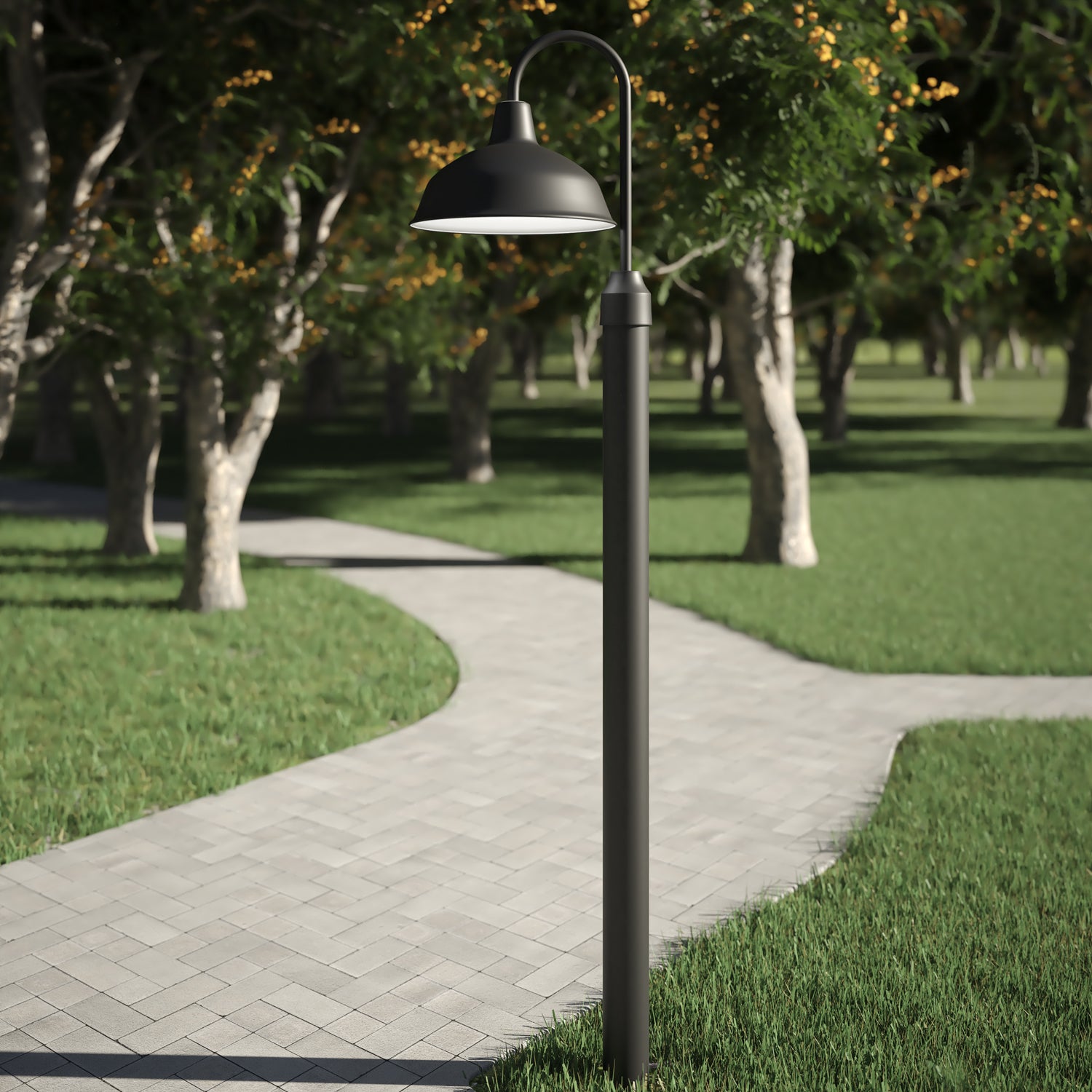 Inspired by turn-of-the-century industrial lighting, the Asher Outdoor collection brings a modern farmhouse flair to your home or commercial space. The Asher Post Light is rich in vintage styling with the graceful curves of the gooseneck arm and 12.5" modern shade. The matte black finish with white interior adds a refined note to this updated barn light. The fixture can be mounted atop of round metal post; alternately, it can be mounted to other surfaces with a pier mount. Both mounting options are sold separately and come in matte black. This post light will brighten any front yard, walkway, or outdoor living space. The Asher Post Light is part of a larger collection of fixtures to complete your lighting needs.
