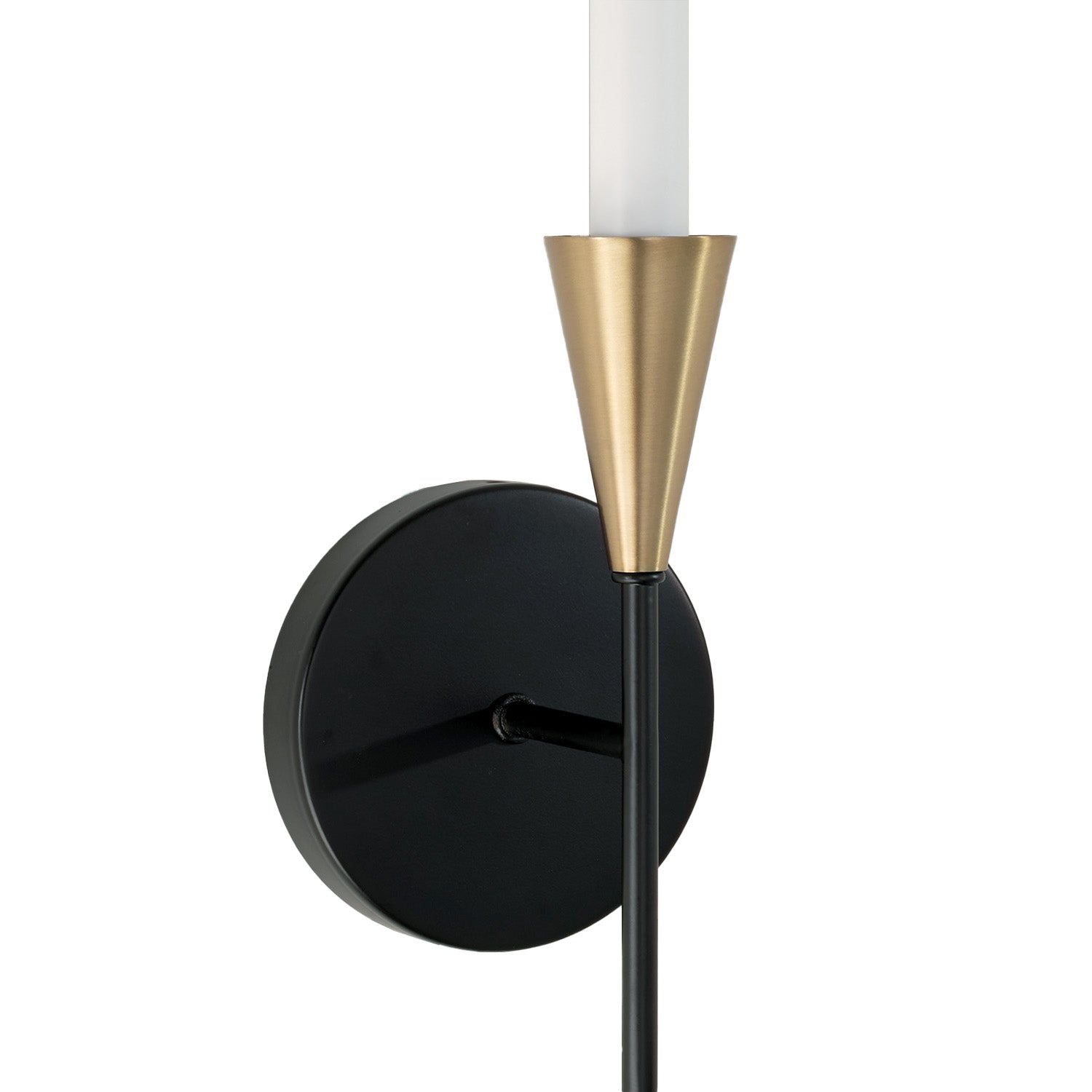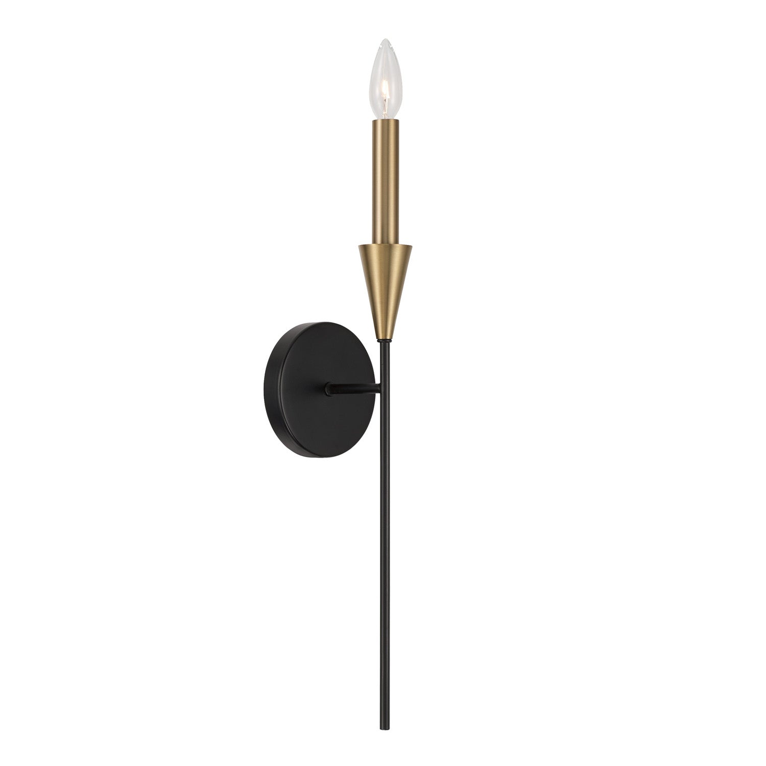 The Astra Wall Sconce brings art deco glamour to any space with its bold geometric design and luxurious aged brass and black finish. Featuring a dramatic 22" tall linear form with sophisticated angular details, this fixture creates illumination perfect for accent lighting, hallways, or dramatic wall displays. The Astra sconce combines bold art deco lines with premium materials to create a distinctive lighting solution that enhances your space with dramatic sophistication.