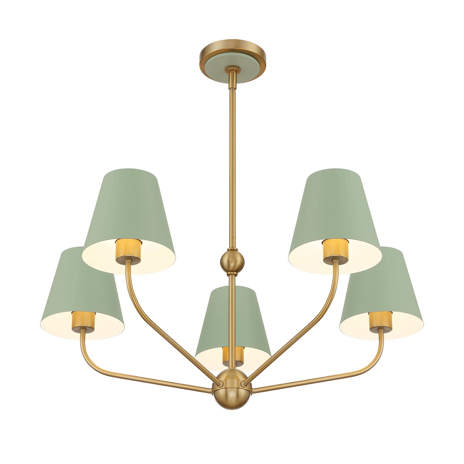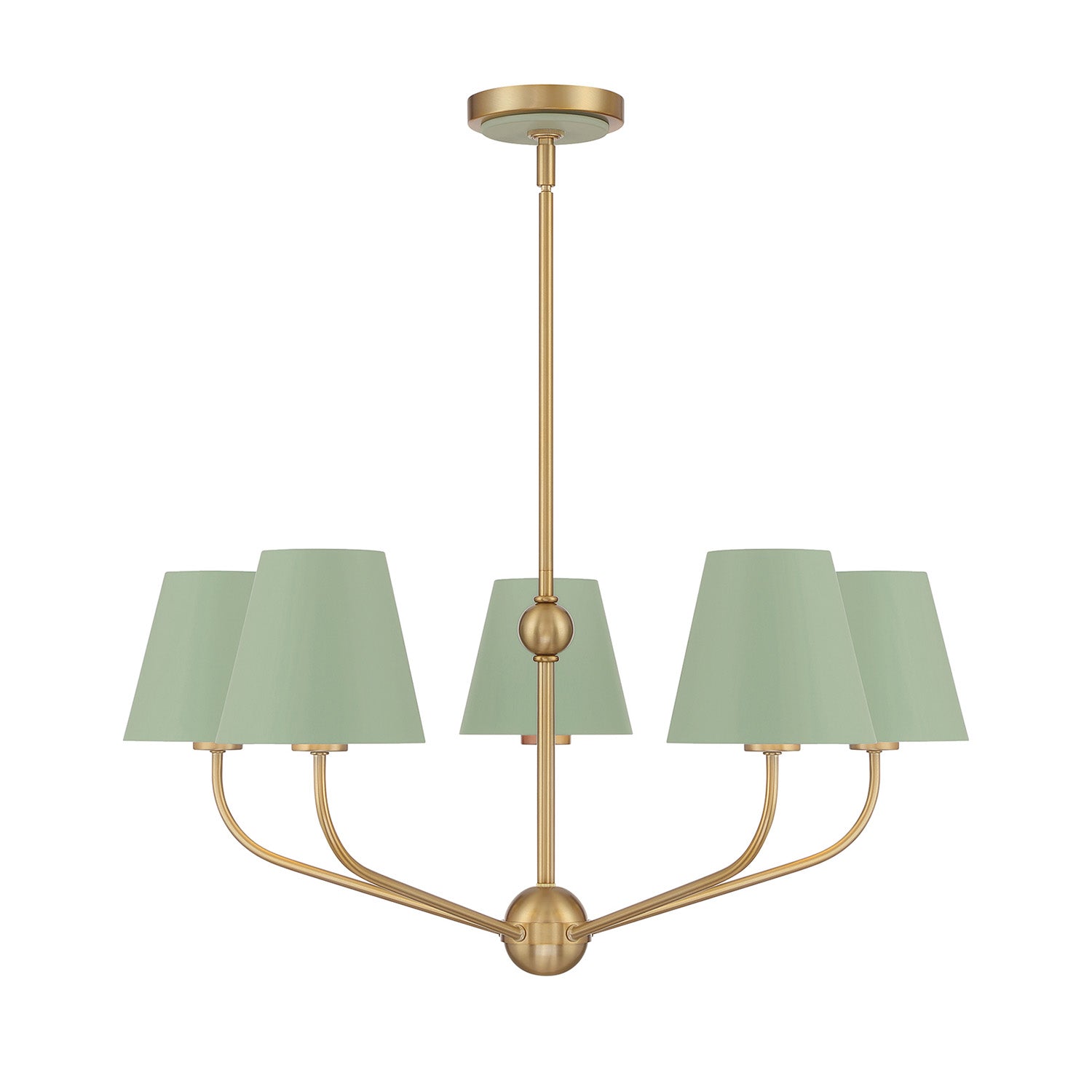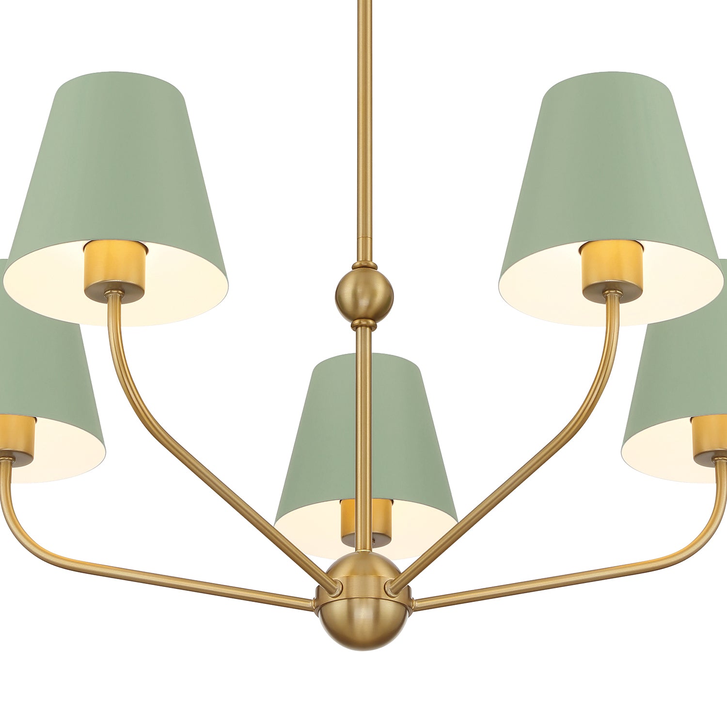 Banks 5 Light Chandelier 28", Sage Green and Brass