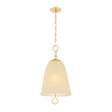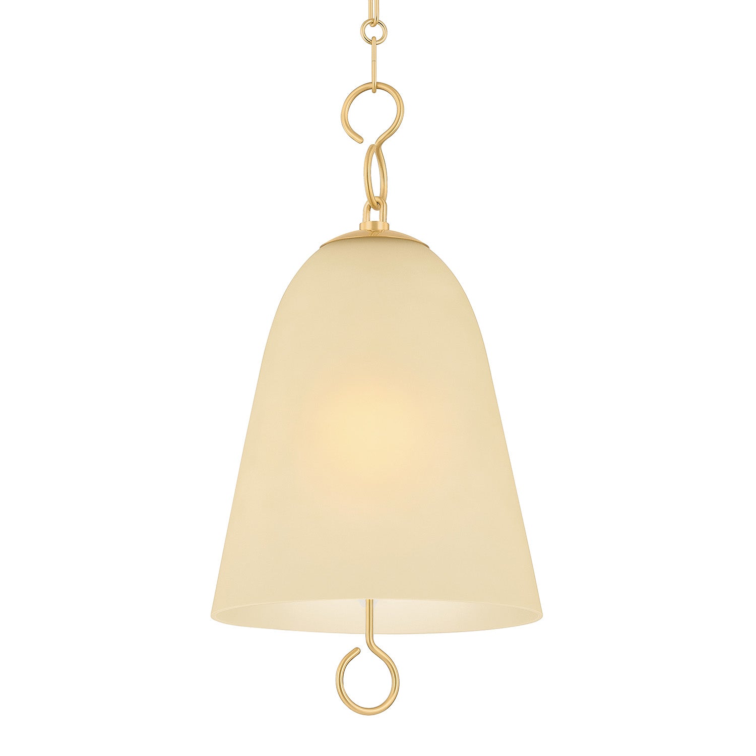 The Bellport Small Pendant makes a sophisticated statement, defined by its warm, luminous presence and vintage-inspired design. The fixture features a beautifully shaped Champagne Glass shade that casts a soft, amber-hued glow, adding instant warmth and charm to any space. This small pendant is thoughtfully designed to provide focused, ambient illumination, making it an ideal choice for a cozy nook, hallway, or clustered over a kitchen island. With its UL damp rating, it offers both functional beauty and versatile appeal. The rich Aged Brass finish enhances the glass's subtle tint, delivering enduring style and a perfect blend of elegance and simplicity.