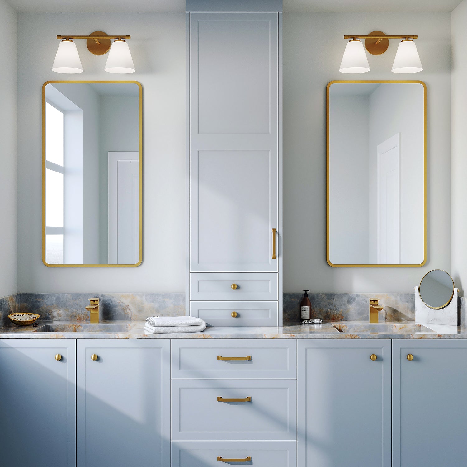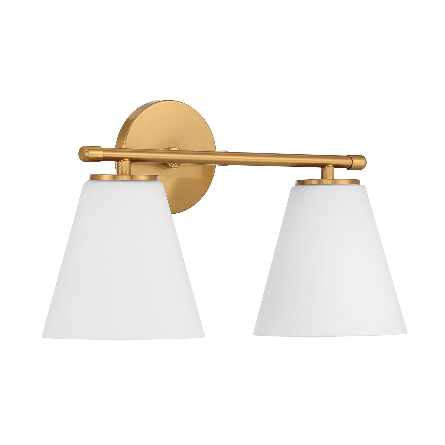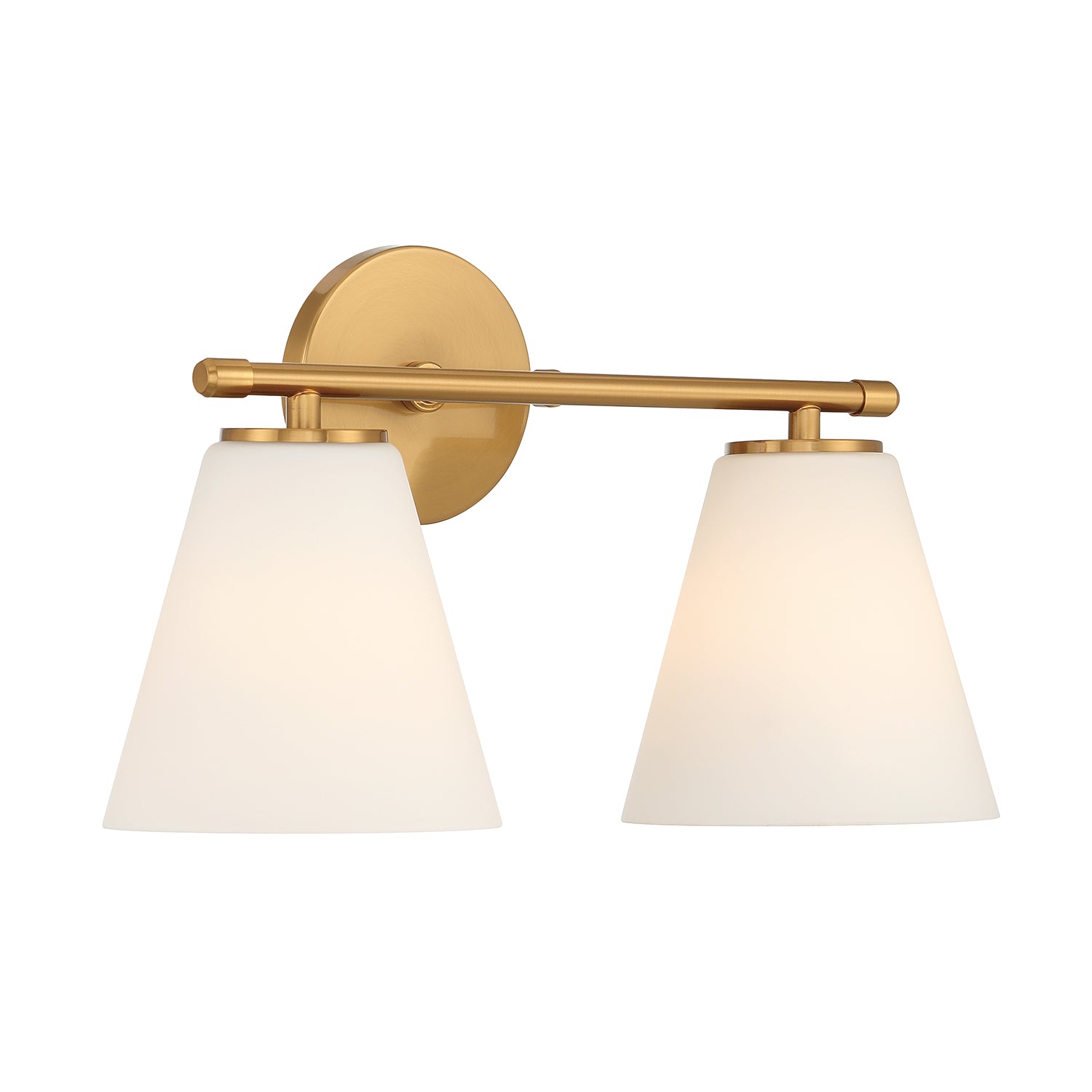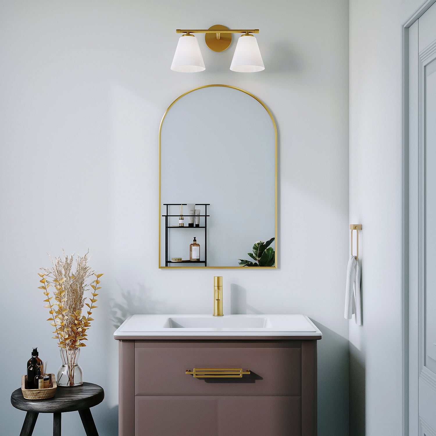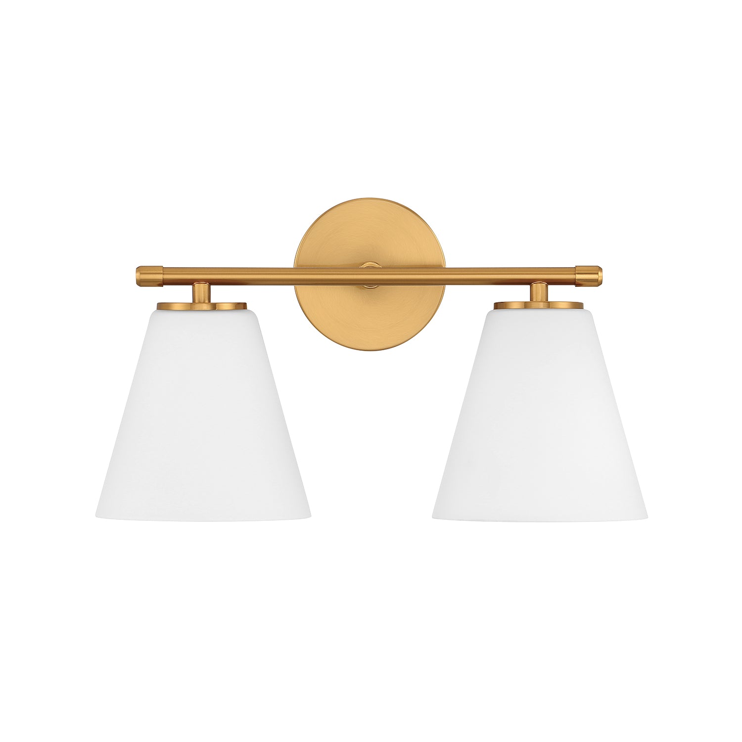 Carlisle 2 Light Vanity Wall Light, Brushed Brass with Opal Glass