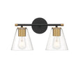 Carlisle 2 Light Vanity, Matte Black and Brushed Brass with Clear Glass